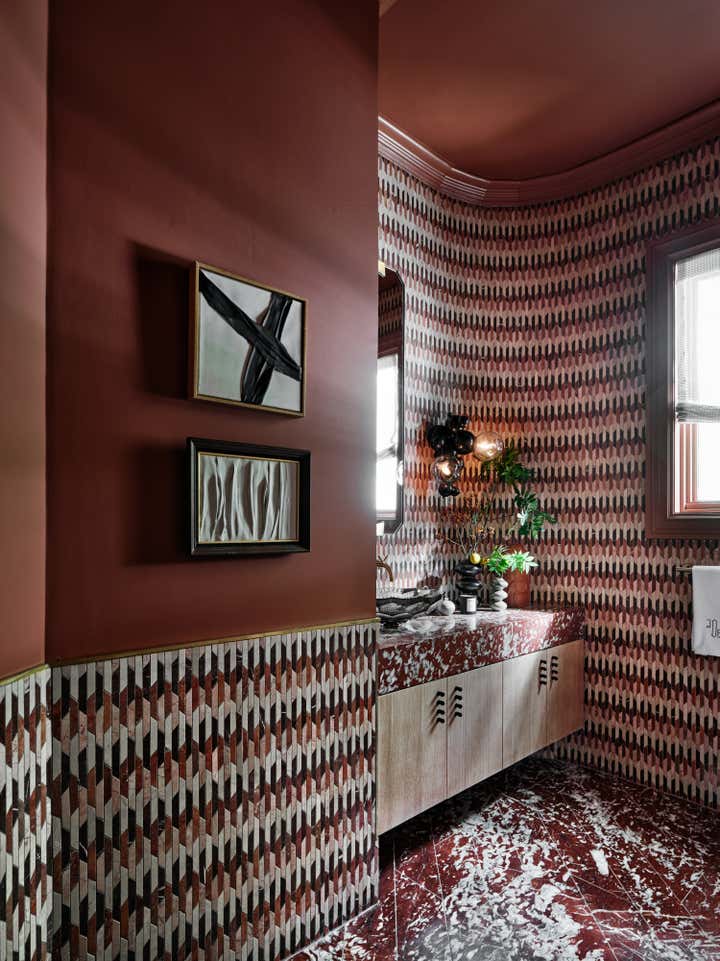Jessica Davis and her team designed a Sunset Corridor and Powder Room inspired by the natural surroundings of Texas for the Kips Bay Dallas Show House 2022.