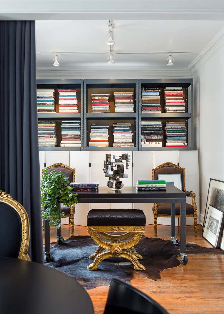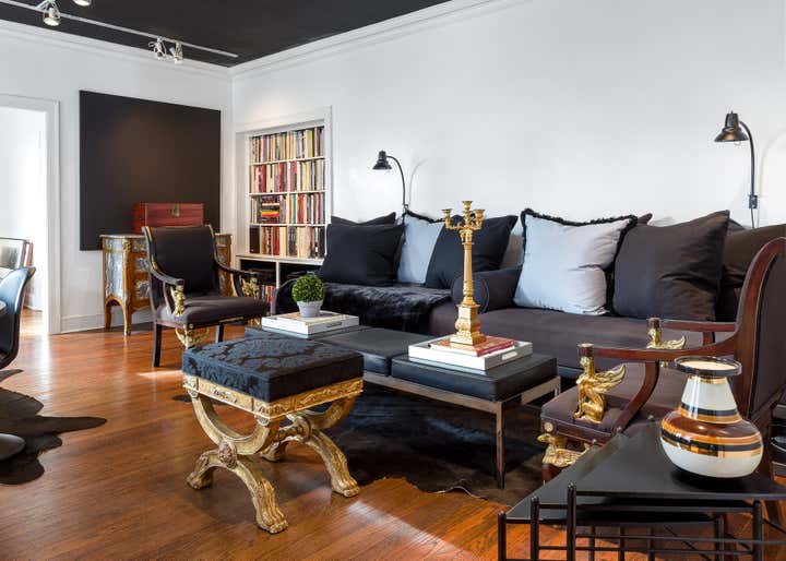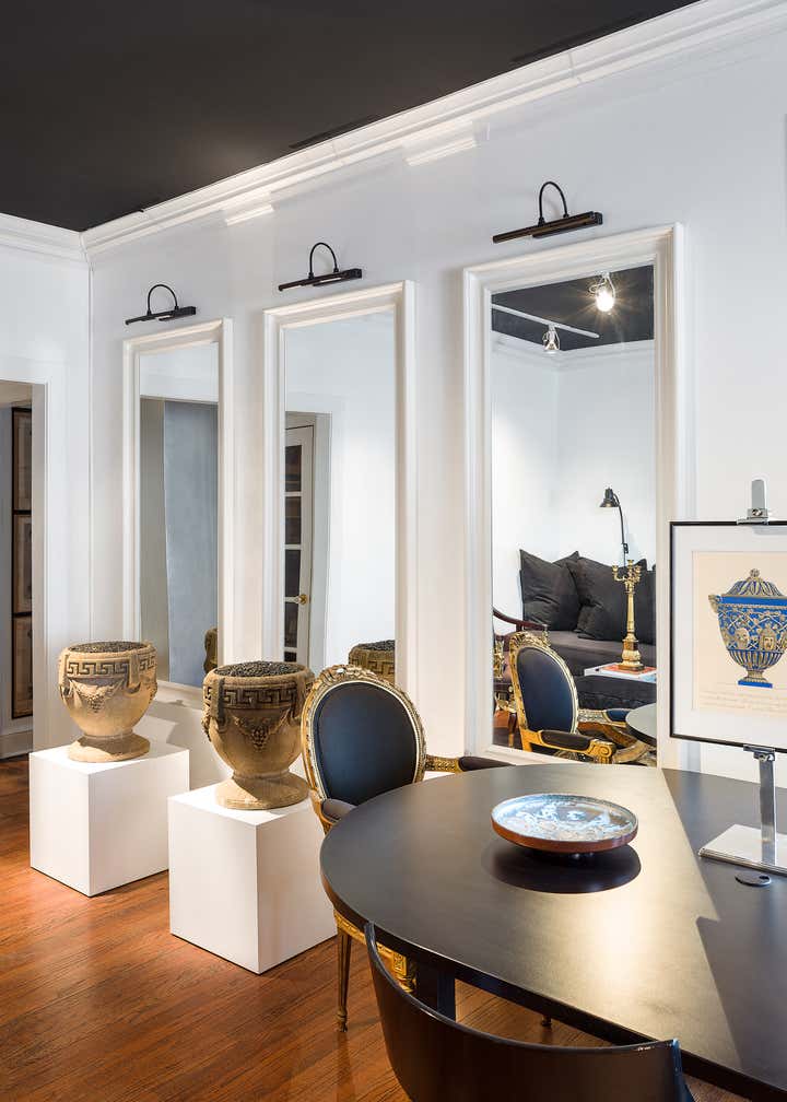 In this vintage Lake Shore building, the client requested an urban, masculine feel with Black as the main color. Pieces from IKEA and Room + Board commingle with Louis XVI and Regence antiques.