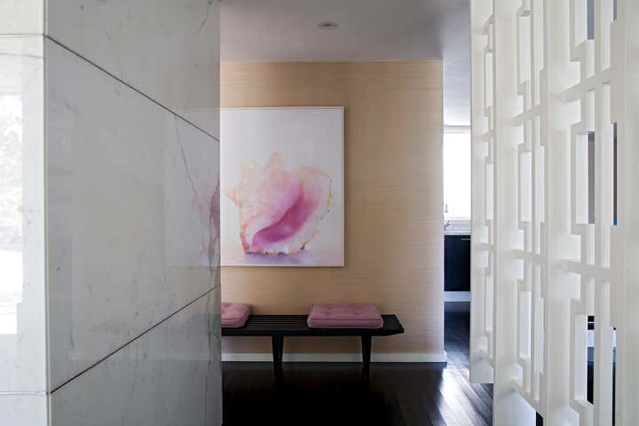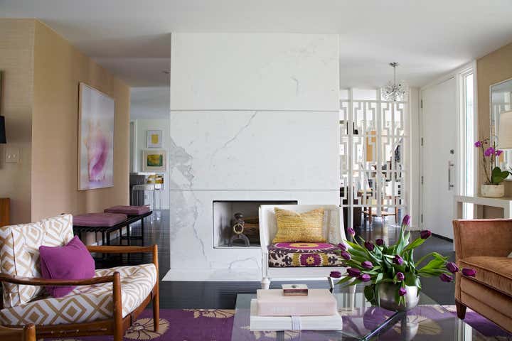 This modern house, originally built in 1972, was meticulously renovated for myself and my family. The open plan was given new life, carving out a third bedroom and adding new hardwood floors, a freestanding marble fireplace and custom kitchen. The master bathroom has a large shower with glass tile and terrazzo floors.