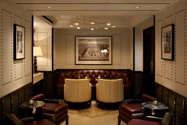 Inspired by the site s former life as the hotel’s working luggage room, the interior imbues heavy reference to the details from early 20th century travel trunks whilst also re-living the glamour and decadence of the Bentley Boys who used to live and party on the adjacent Grosvenor Square in the 1920’s.
