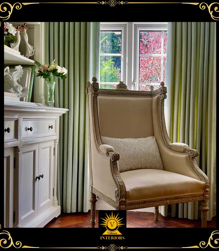 Sage Curtains : sourced from Clarke Clarke handmade with triple pinch pleat.