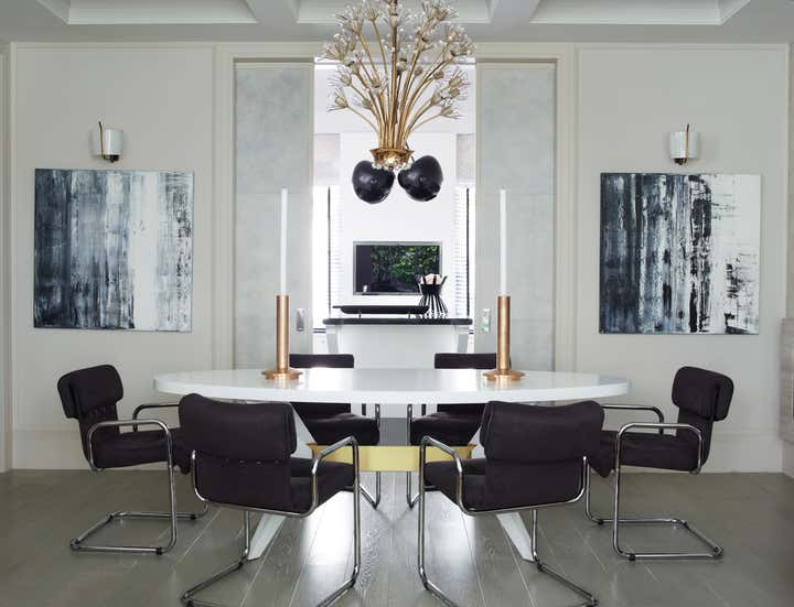 Located in the heart of Marylebone, this ground and lower ground floor office space with a back courtyard was converted to a sophisticated, playful enfilade residence for our young female client.
