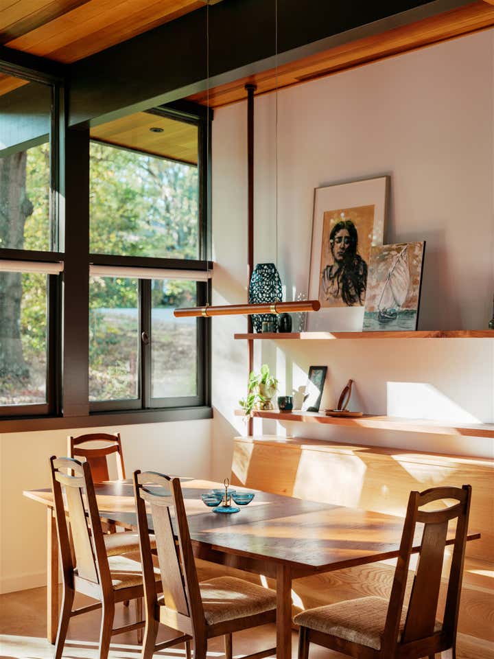 Nestled on a wooded suburban lot, this thoughtful renovation reinterpreted the spirit of a classic midcentury home for clients who were passionate