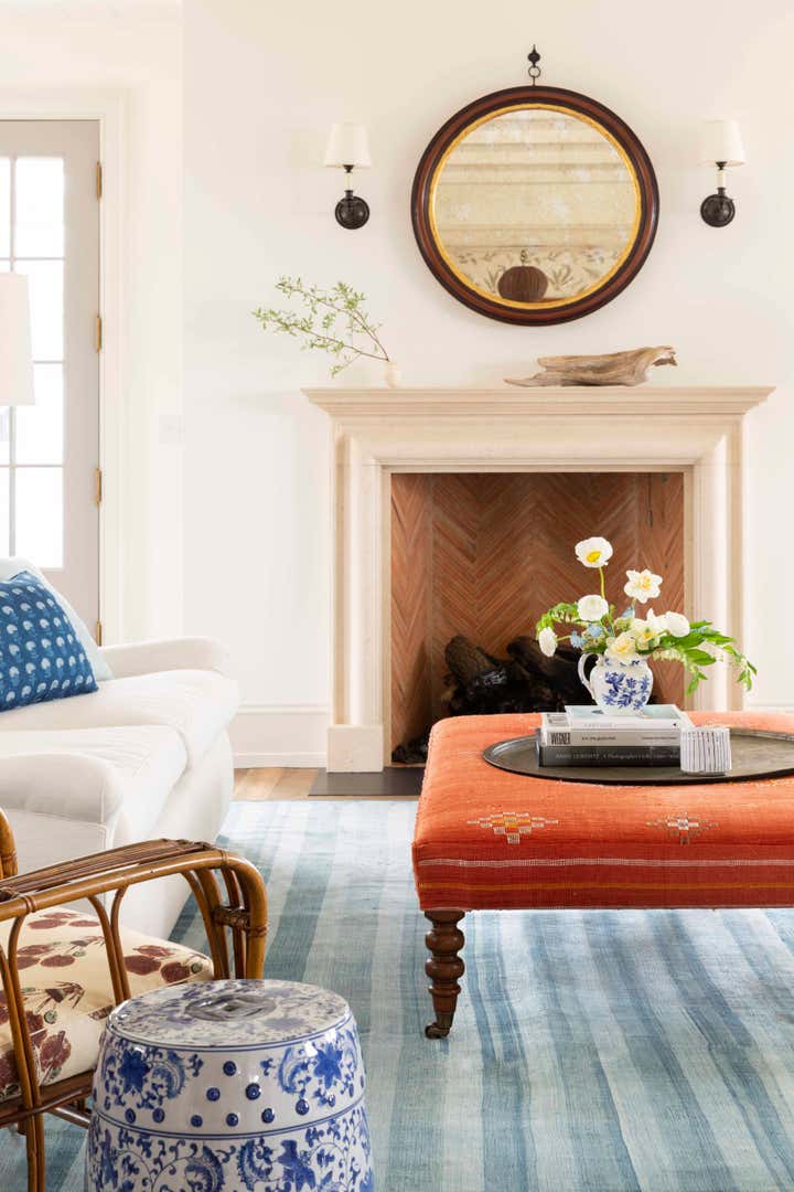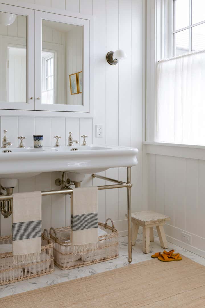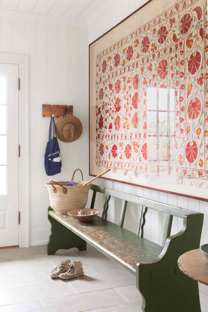 Though the construction was all new, the homeowners wanted their summer home to feel old, as though it had been passed down over many generations. KMD drew on memories of Katie’s childhood summers on Martha’s Vineyard in the house built by her great-grandparents. Middle Valley Road was furnished with a combination of new, antique, and vintage items to create unfussy, layered rooms.