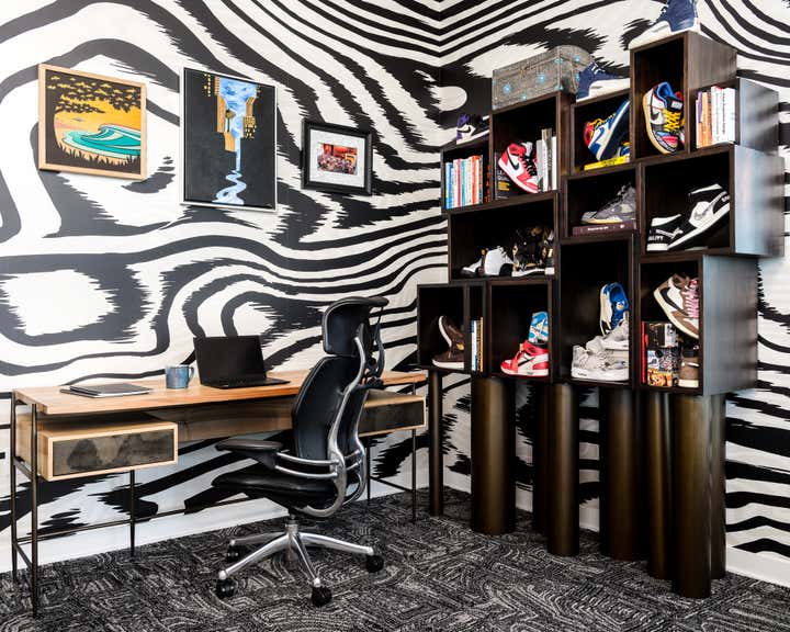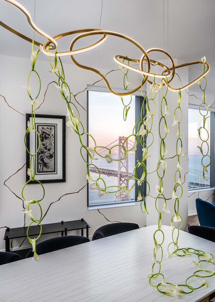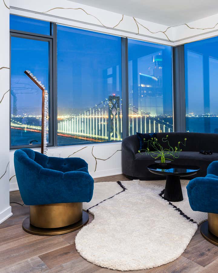 Our clients arrived with a shared love of the sweeping views of the Bay and its bridges, but non-shared, non-overlapping styles for the interior design of their home. They asked our team to create a cohesive vision for their common spaces that would “bridge” their distinct ideas, while manifesting his + hers office spaces that could be full representations of their own unique tastes.