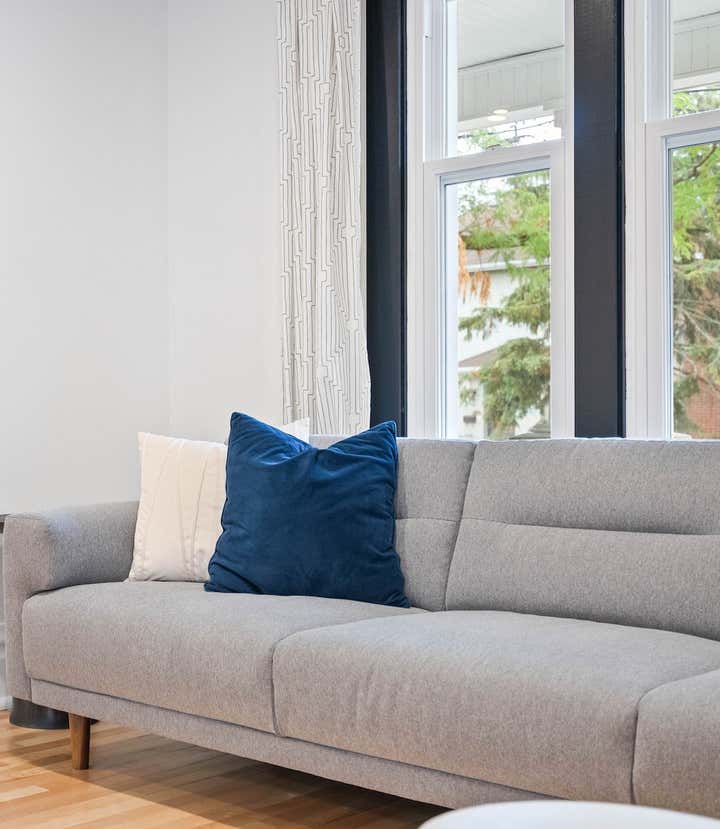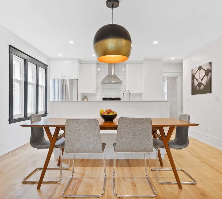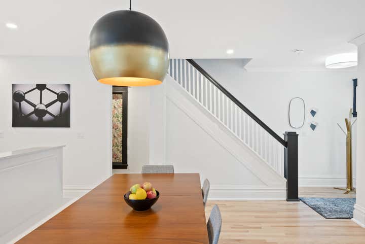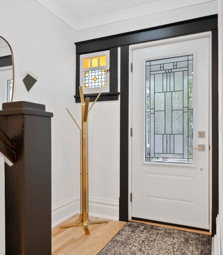 Maintaining the original stained glass, stunning brass hardware, oak banister, and trim work throughout this 1930s home helped set the tone throughout the space. We emphasized the home s enduring beauty while injecting modernity and a sense of easy elegance into a newly re-imagined light, bright, and airy 21st century space.
