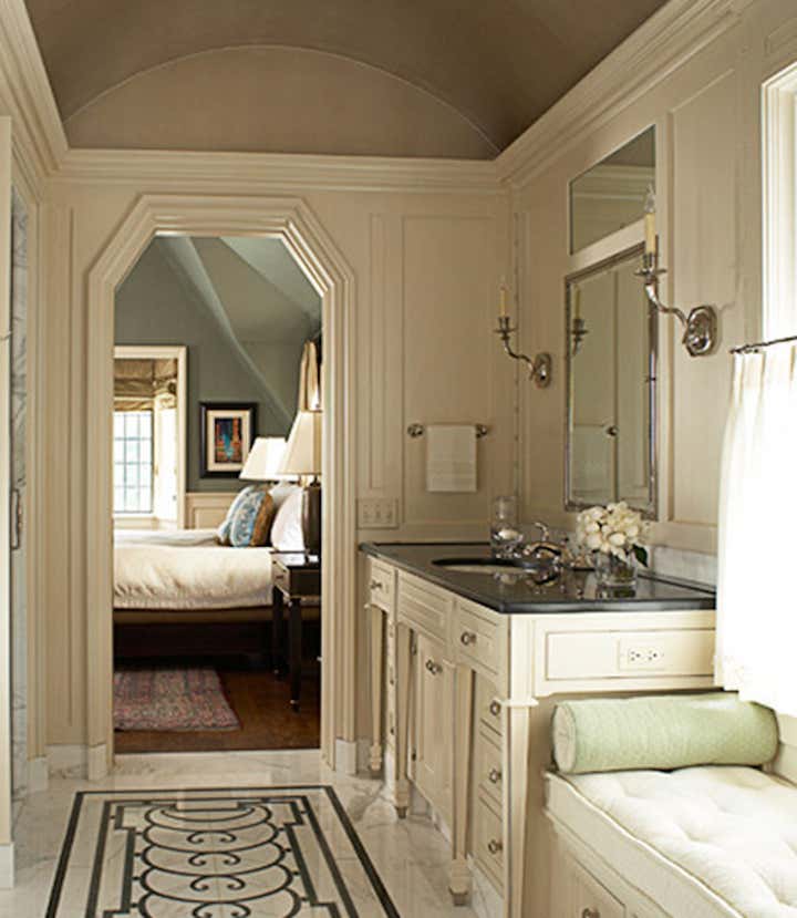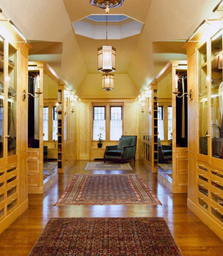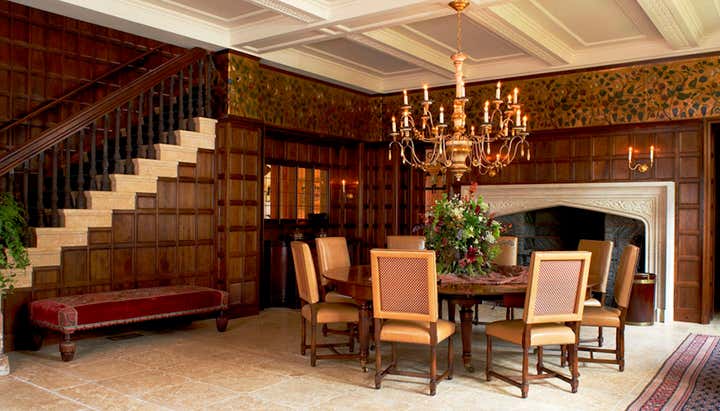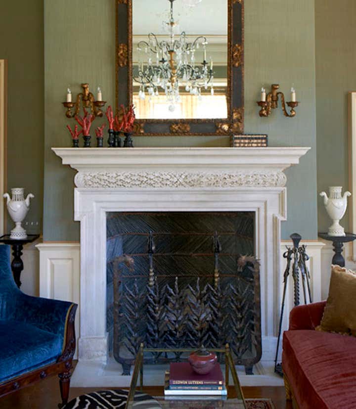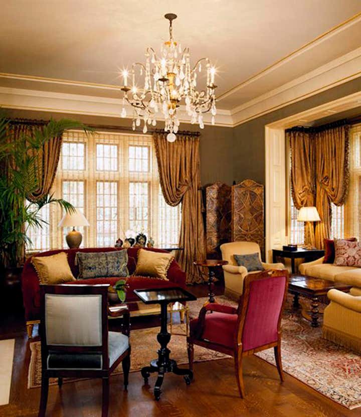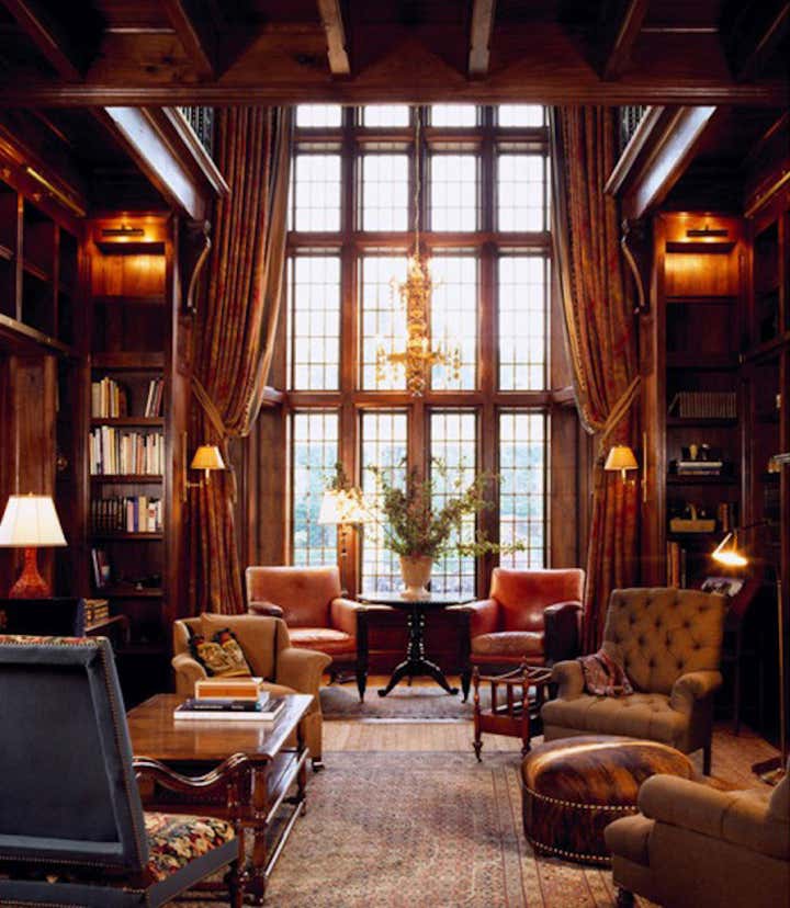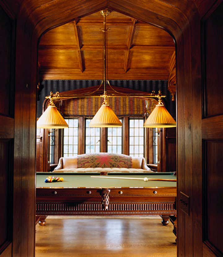 After a visit to a 1903 country house by English architect Sir Edwin Lutyens, our clients commissioned their own manor in Chicago. To shop and explore their aesthetic, we traveled together across the English countryside. Meticulous research inspired the walnut-paneled library, the embossed leather wall coverings, and the mahogany table sourced from a London antique shop. Whether custom or a century-old heirloom, furniture is made to withstand the wear of family life. Though we used the past to build a framework, we avoided creating a period stage set by layering in nuances like textural wallpapers and Fortuny drapes. The home remains livable and well-loved.