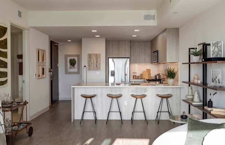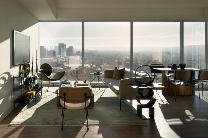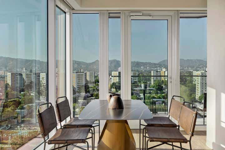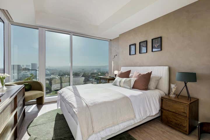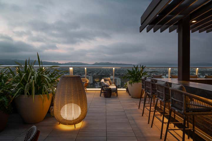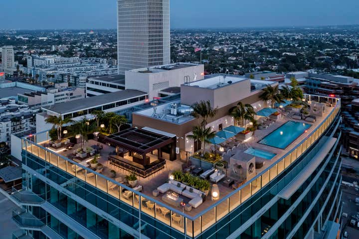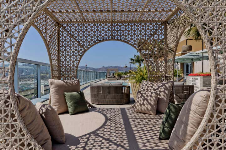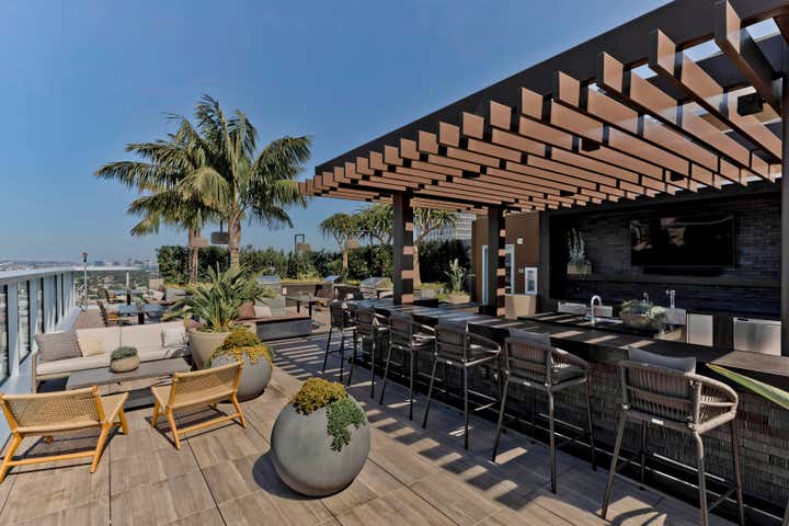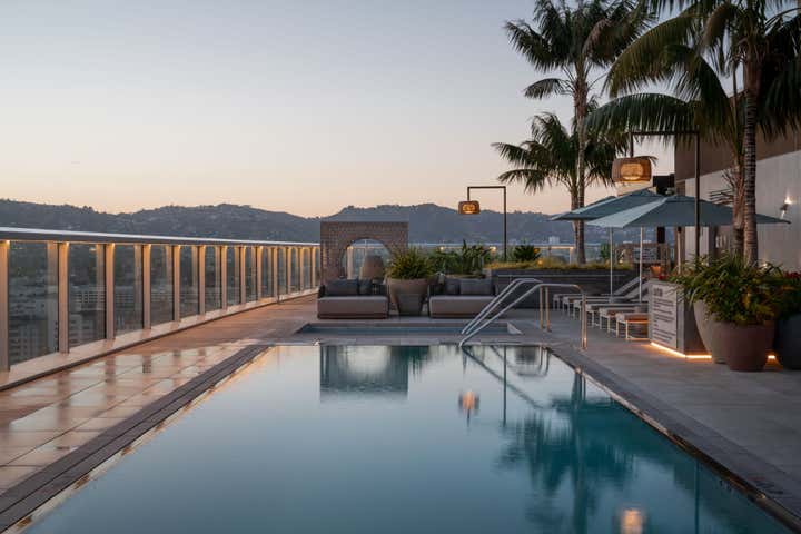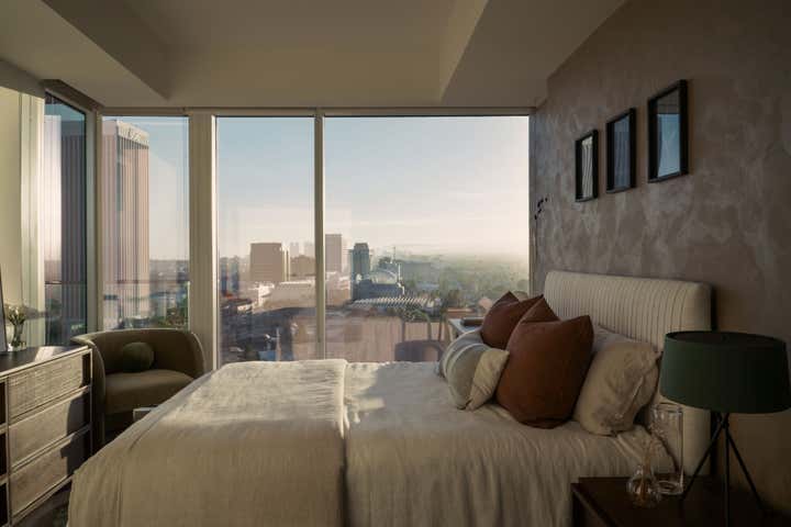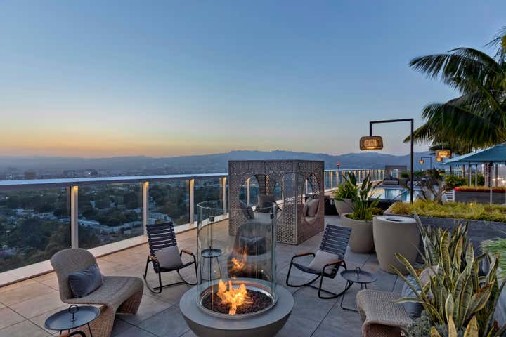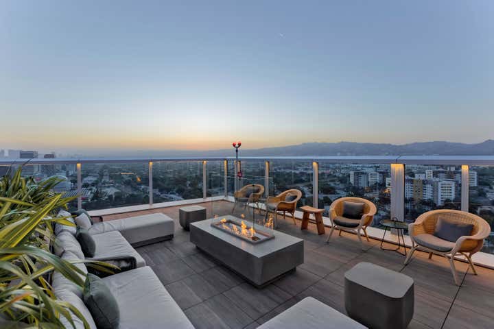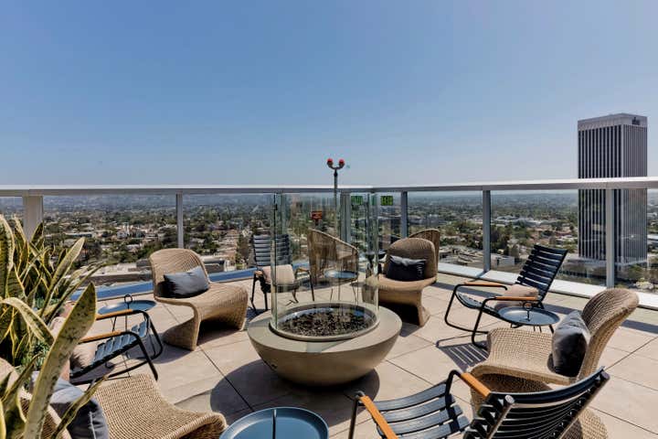 A residential tower on Museum Row with unobstructed views of the hills of Los Angeles, a lushly landscaped rooftop complete with a large pool, bar, and fire pits to watch the sunset and city lights.