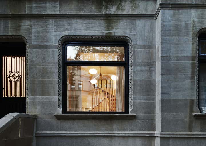 This four-story Queen Anne rowhouse was built in 1891, just steps from Prospect Park — an area once referred to as “Brooklyn’s Gold Coast.” It was designed by prominent Brooklyn-based architect George P. Chappell, and features a façade clad in limestone, terra cotta, and tan-colored brick.