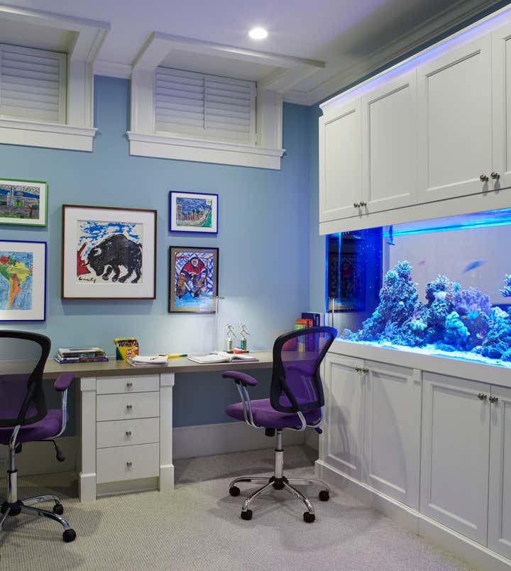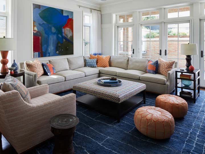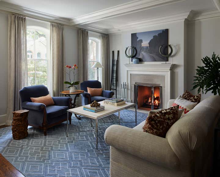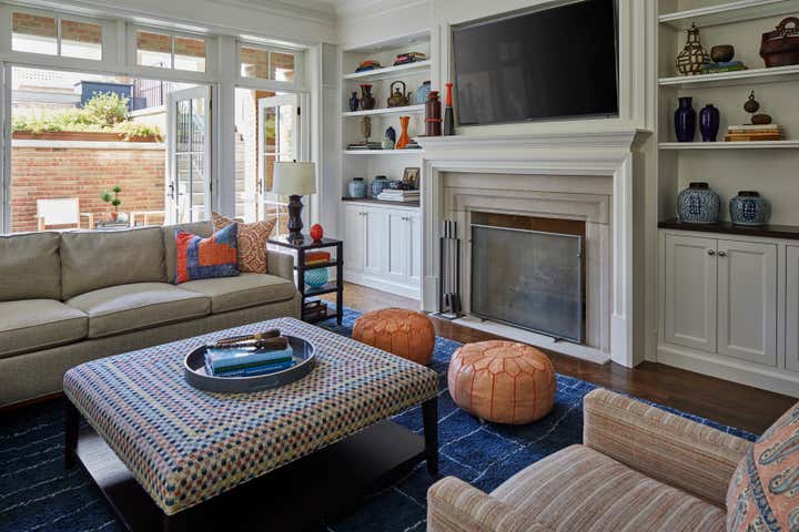 Old meets new in this landmarked historic cottage in Chicago’s culturally-rich Old Town neighborhood. Originally built in the 1860s, it was completely gutted to welcome natural light and create open, modern-day connections between rooms – and between members of the busy young family that calls this house home. Welcomed by an elegant living room layered with muted blues and grays, it transitions front to back into ever-more colorful spaces – culminating in an inviting kitchen and neighboring family room crisped by navy and enlivened with orange. Living space extends further, courtesy of an outdoor gathering area furnished with indoor-worthy detail. Downstairs, thoughtfully-conceived space will grow with the family’s children. It includes a kids’ lounge area, along with a dedicated room for homework and studies. The two are creatively divided yet visually joined by a two-sided aquarium – an ideal reflection of our clients’ unique interests, and our ability to incorporate those interests into beautifully functional design.