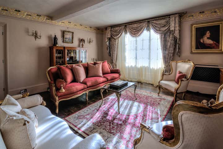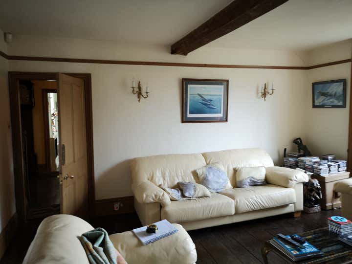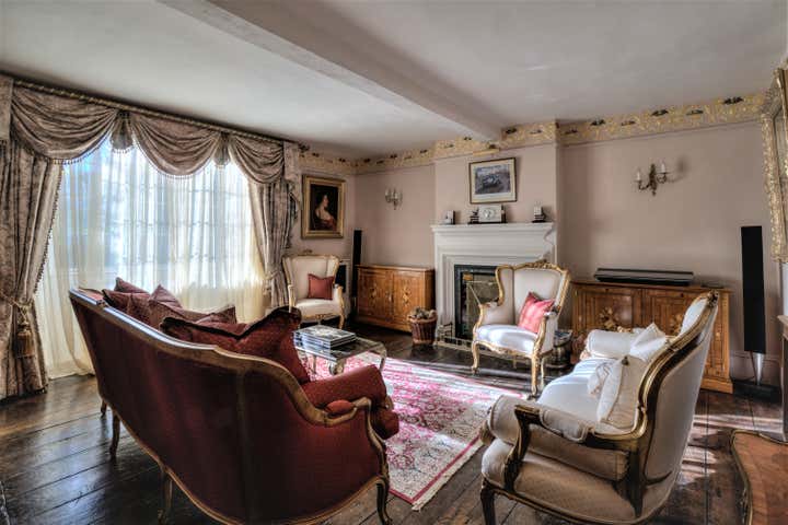 We added all the seating and soft furnishings, we designed the window dressing to be centre stage and reflect the elegance of the Client s paintings, to distract slightly from the fireplace in the centre of the room.