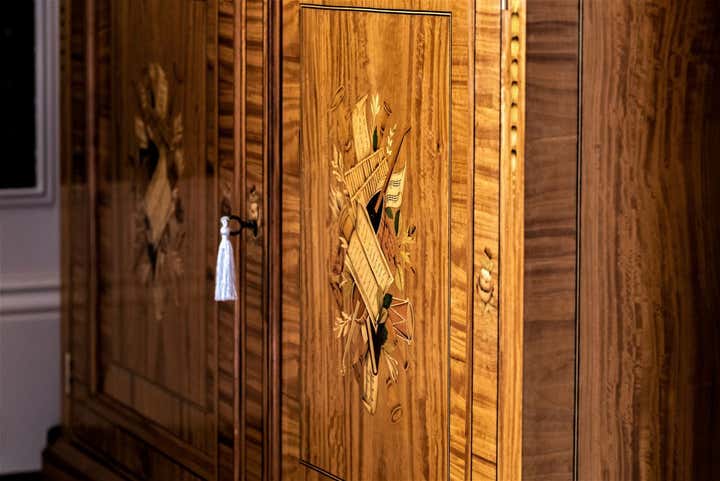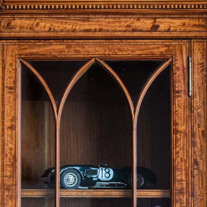 We kept colours muted and calm on the walls to show case the beautiful antique furnishings and we designed and created some cabinetry to hide modern features such as a television and sound system.