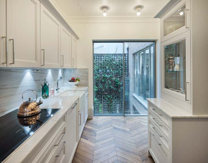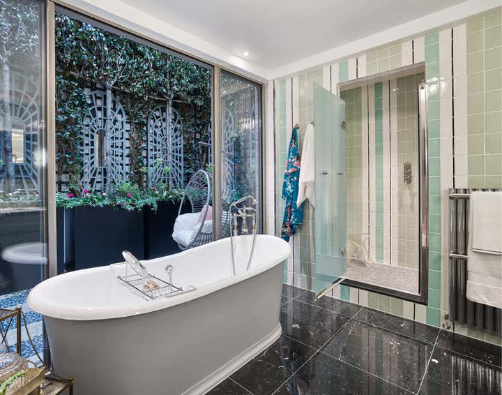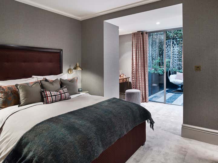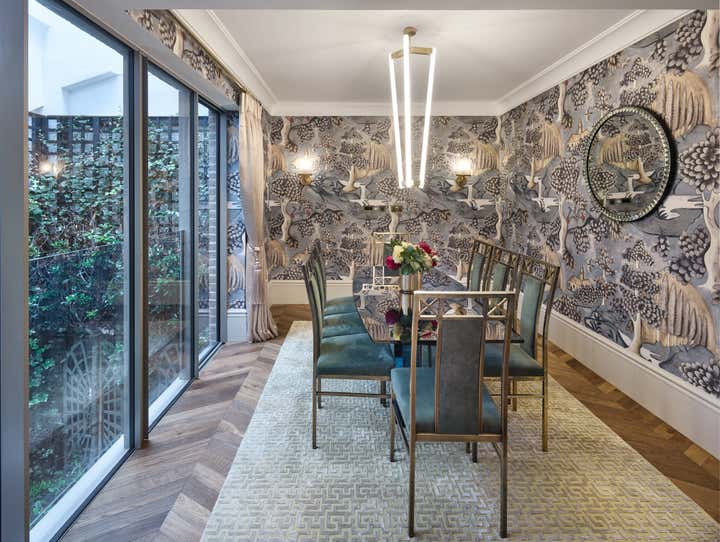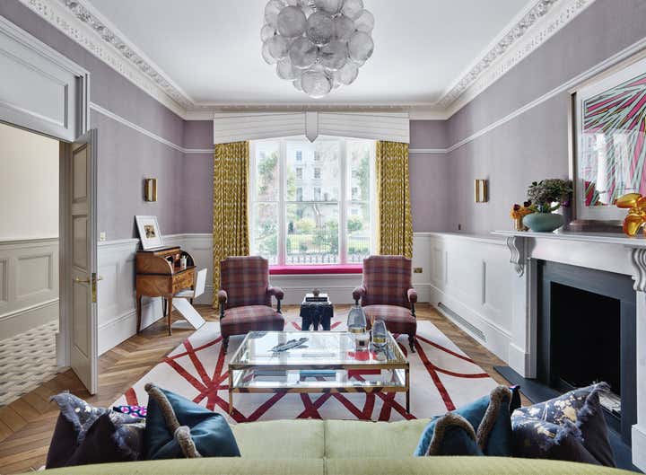 The project was a full restoration of a three story London town home overlooking a garden square. The project was a joyful combination of American preppy-ness and elegant London bohemian eclecticism. The concept was inspired by the buildings architectural heritage and the areas eclectic history. The result is a joyful and luxurious home that also doesn t take itself too seriously. Traditional forms, bold colours, glamorous textiles, accents and materials were used to colour outside the lines and express personal style with charm. Traditionally, the first-floor front room was reserved for formal entertaining in Victorian homes. However, Studio L felt that a home of the stature should be allowed to have the master suite that felt extremely special and far enough away from the rest of the house so it felt like a private sanctuary.