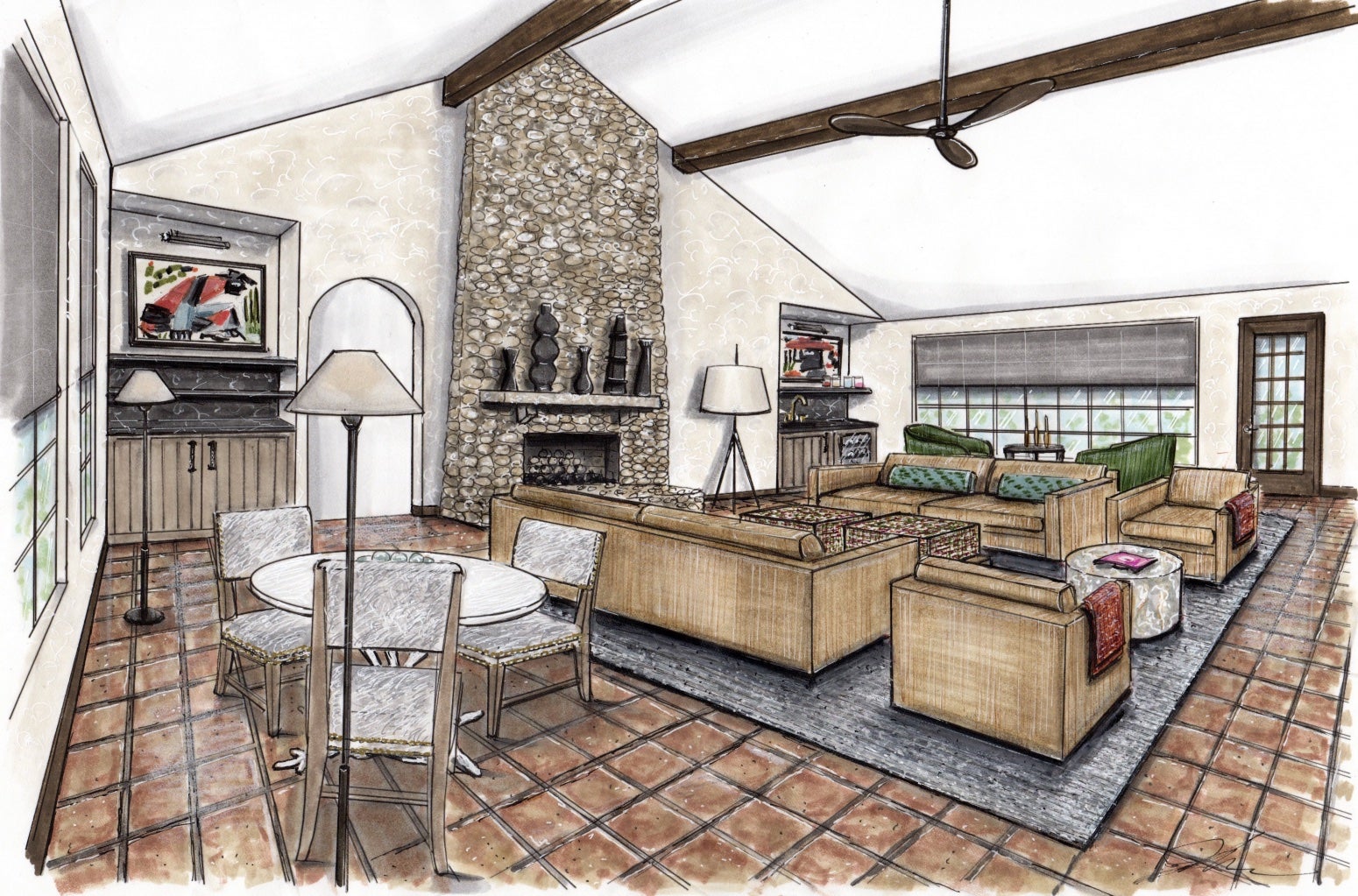 In-progress projects hand rendered by artist Jane Gianarelli.