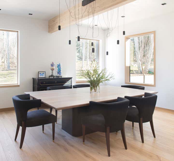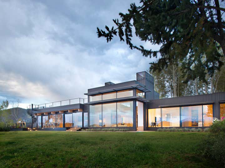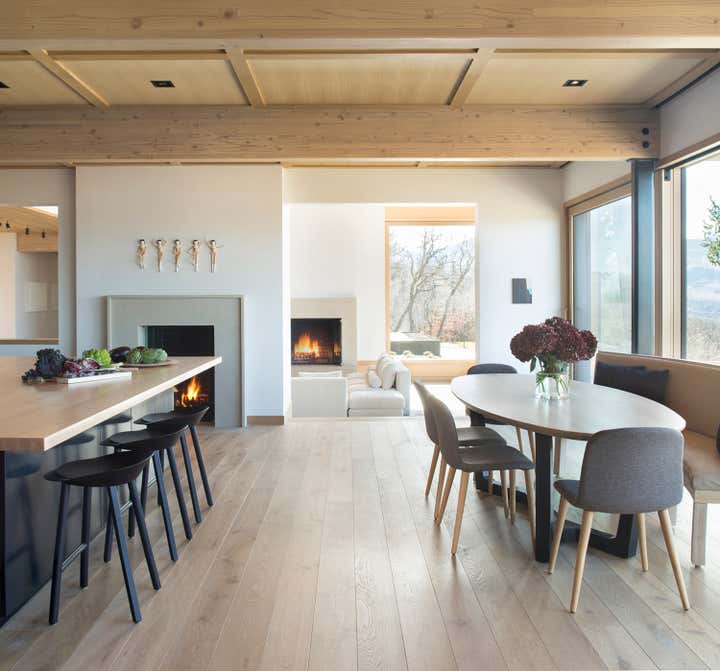 Set along a ridgeline with significant mountain views, Ridge House is a thoughtful blending of old and new. Sets of staggered, remnant stone walls run in a single direction, allowing light and landscape to slip past. Oriented along a central defining spine, metal walls meet stone and evolve into glass as movement through the house progresses from public to private spaces. Modern architecture mixed with curated details allows for a layering of history and a connection to the ranch-like character of the site.