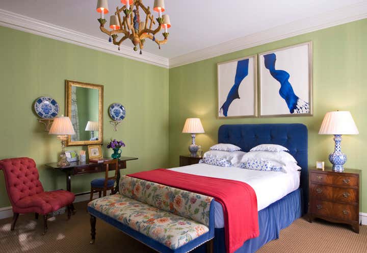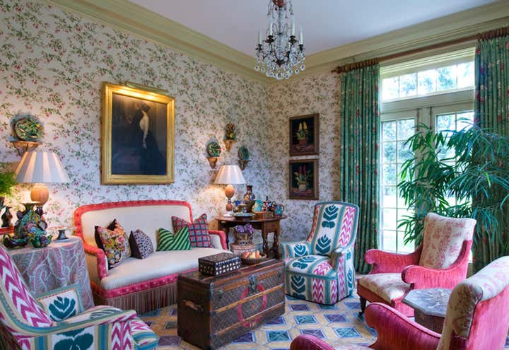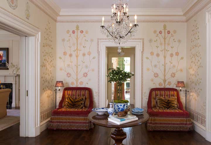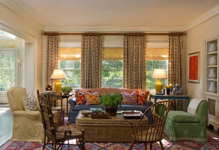 This residence was built in 2003, but pays homage to the sensibility of an earlier era in its proportions and detailing. Wolf’s decorating reflects a long term commitment to collecting, and expresses the homeowners love of art, color, and craft.