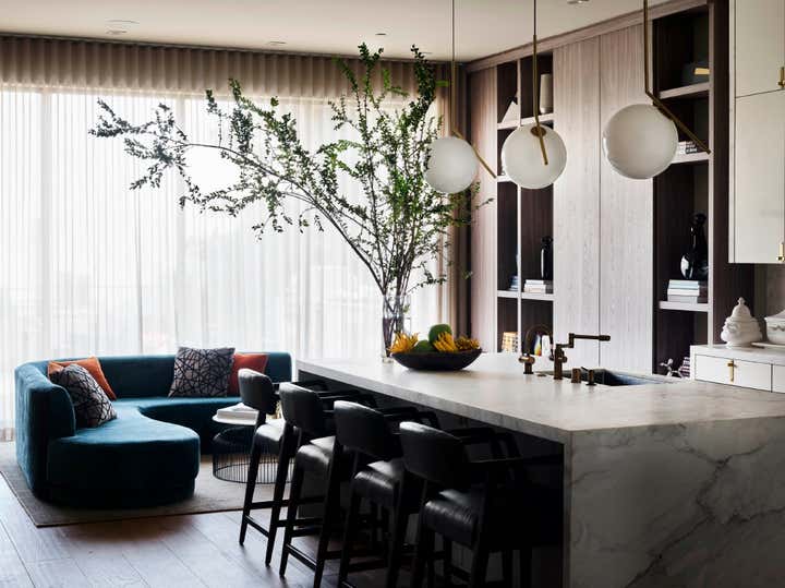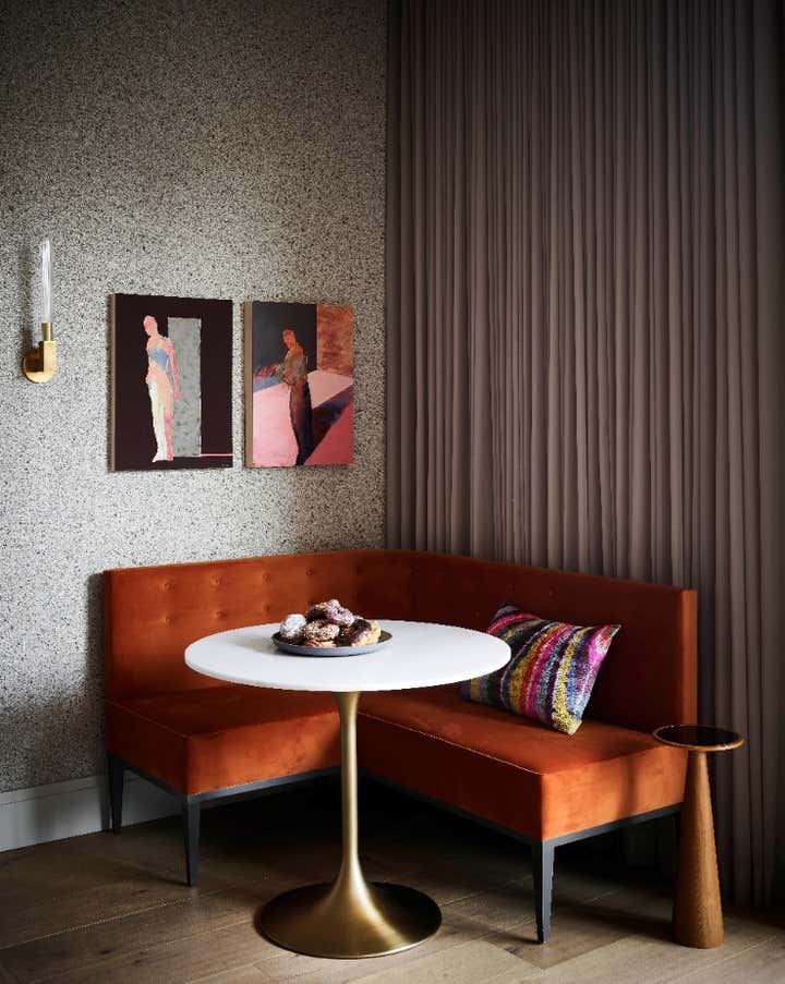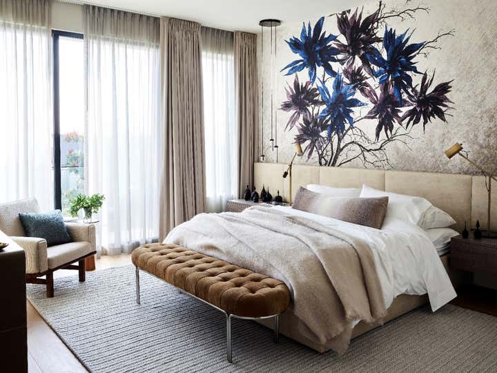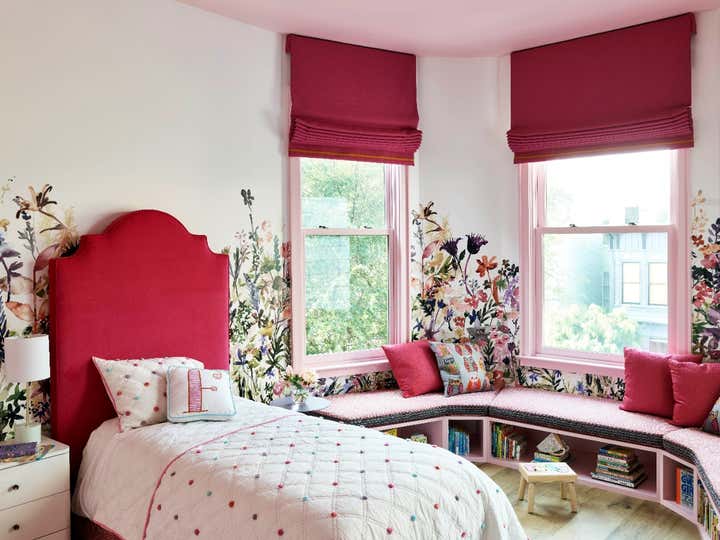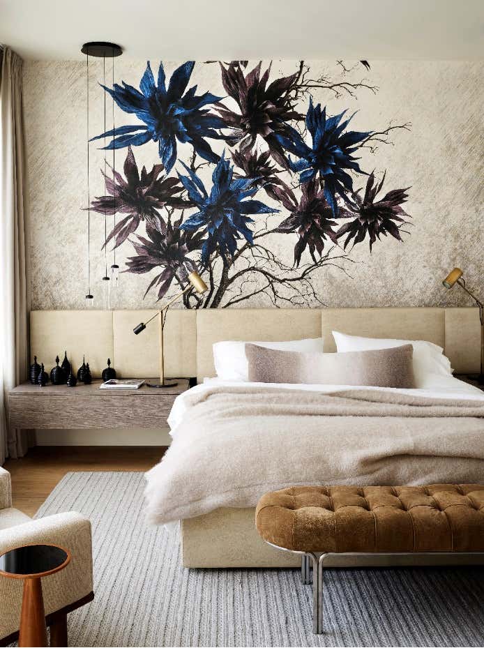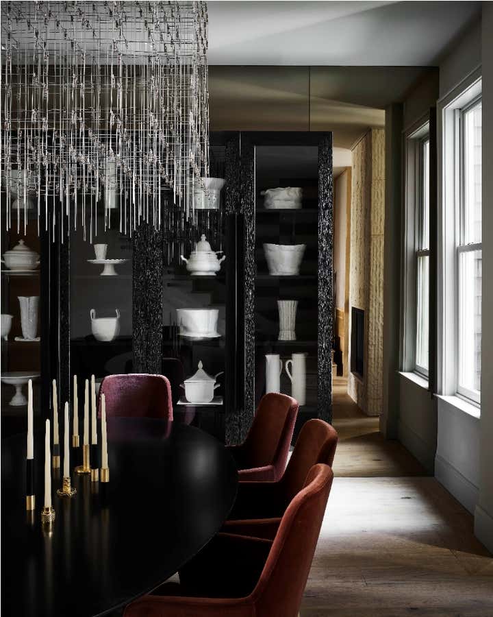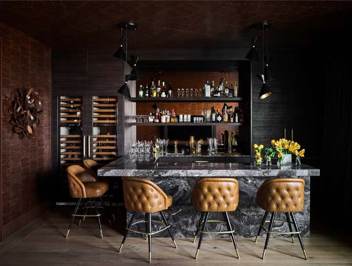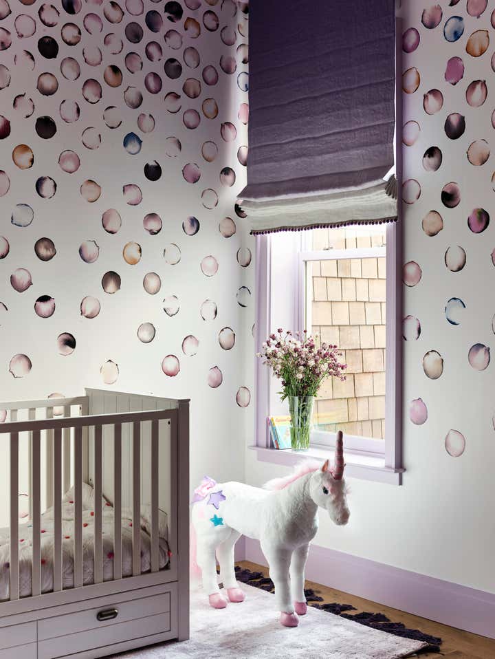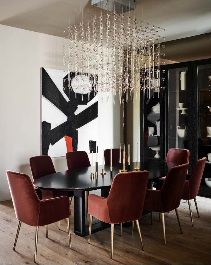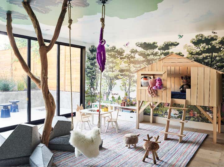 Hello, Victorian revival! We were enlisted by a young family of four to help undertake a soulless spec home on San Francisco’s top block and unveil its true potential in an exciting way that works for them. A departure from our serene neutral palette into an explosion of color across adult spaces for entertaining and children’s spaces for play included a new outdoor kitchen; a full-scale penthouse bar wrapped in an envelope of pieced leather wallpaper; a children’s playroom equipped with a treehouse and real foraged eucalyptus tree; as well as custom furnishings, custom wall-coverings and contemporary European fixtures throughout. We worked to introduce a different palette for each room and played with the formality of the spaces to cater to how the family wanted to live and feel in each room– a serene oasis in the master bedroom with the right ‘pop’; a dark monochromatic mood for the dining room; upbeat print and color direction for their daughters that inspires creativity… We knew we had to strike functional elements for the family but also wanted to inspire contemporary silhouettes and installations that would impress.