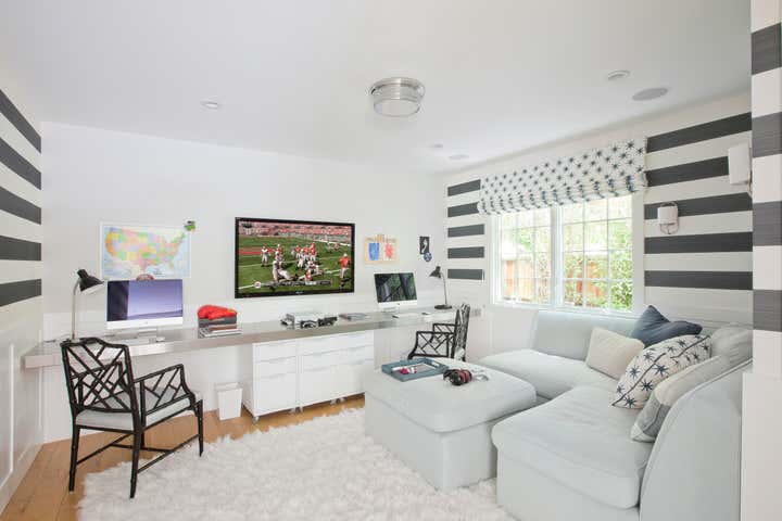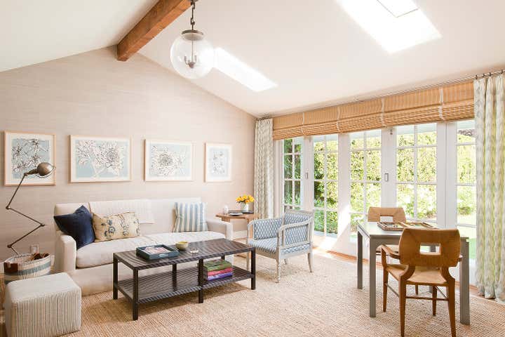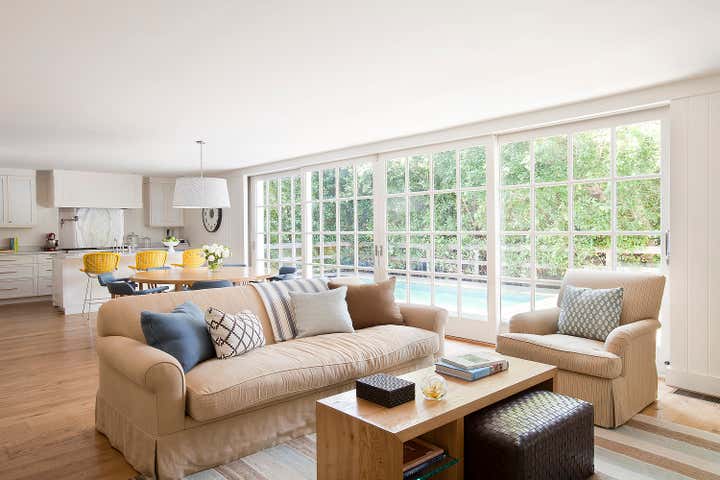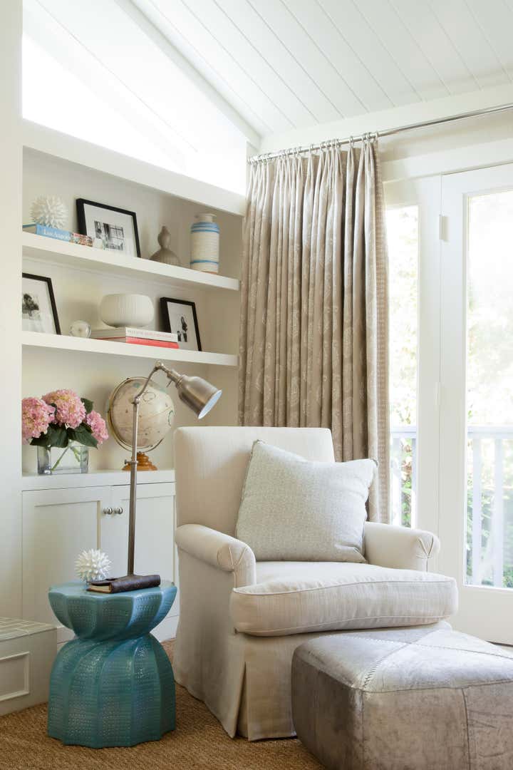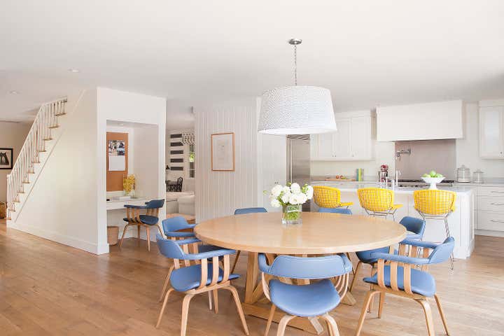 A clapboard Cape Cod family home located in Santa Monica Canyon with an ethereal palette and filled with a mix of modern and transitional furnishings.