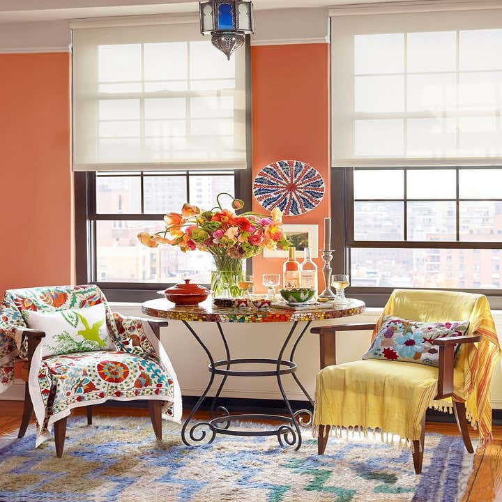 Sara ’s New York City apartment in Chelsea is steeped in color and patterns with layered artwork collected over a lifetime of travel. Decorated to enhance her warm approach to design, and multicultural upbringing, it highlights her approach to domesticity through a kaleidoscope eye. Bathed in light, this perfect sanctuary showcases the work of an interior designer whose deep reverence for harmony and color is impeccably nuanced. “A perfect realization of domestic comfort and imagination, this is where Sara comes to re-charge and create.”