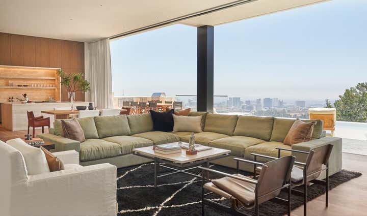 A dramatic new build in the highest reaches of Bel Air was imbued with warmth and character through an elegant assortment of blue chip art work, pedigreed vintage furniture and earthy textiles, provided by Mulholland s favorite Los Angeles dealers.