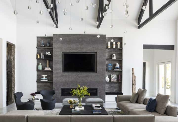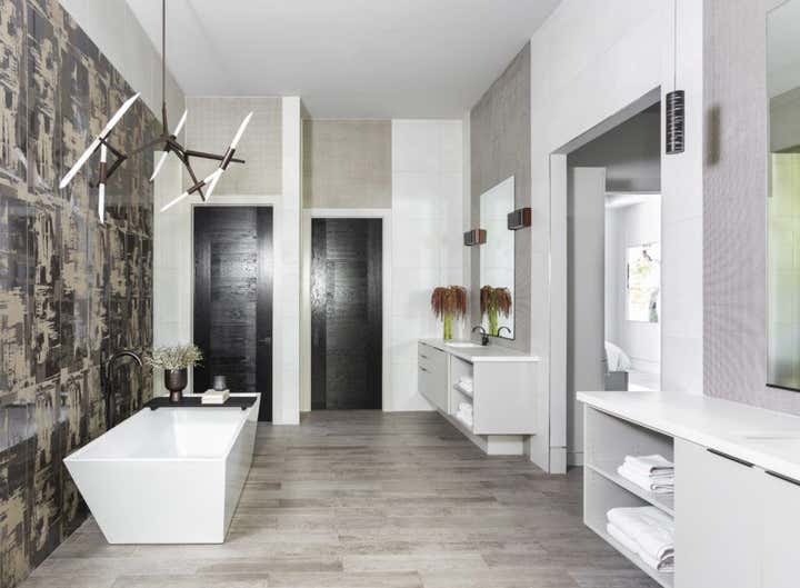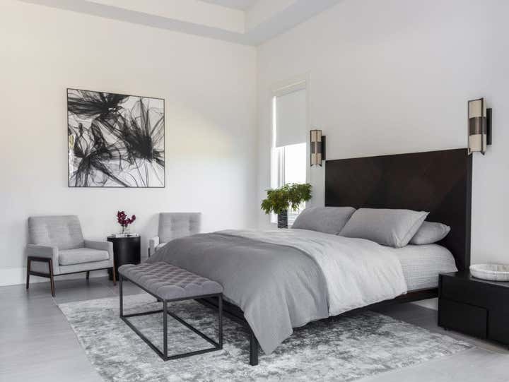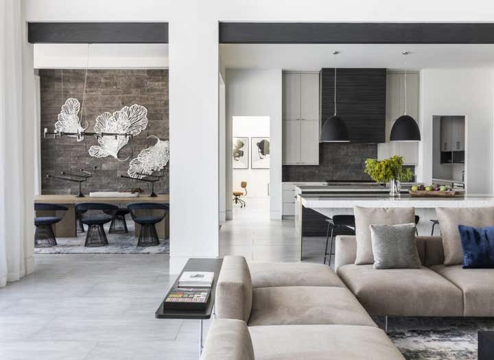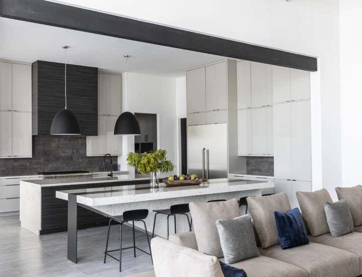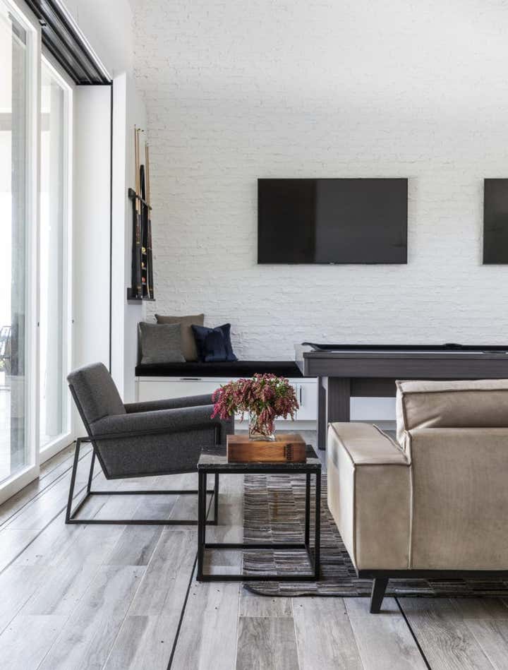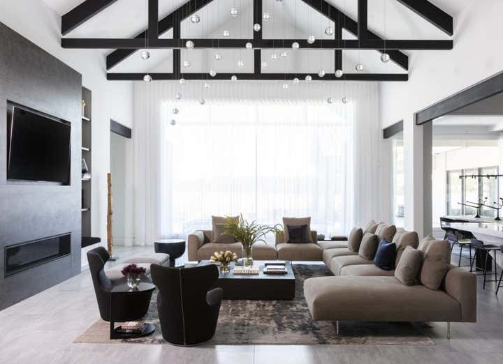 We started from the architectural phase of this project and were present from the planning phase to the last and final accessory. This incredible home is nestled on the lake in Magnolia, TX. While selecting the hard finishes, we were sure to incorporate finishes that were true to the industrial modern style, which is the particular style that our clients were requesting. We created a strong juxtaposition of both feminine softness through the soft finishes for the wife and a sense of masculinity for the husband.
