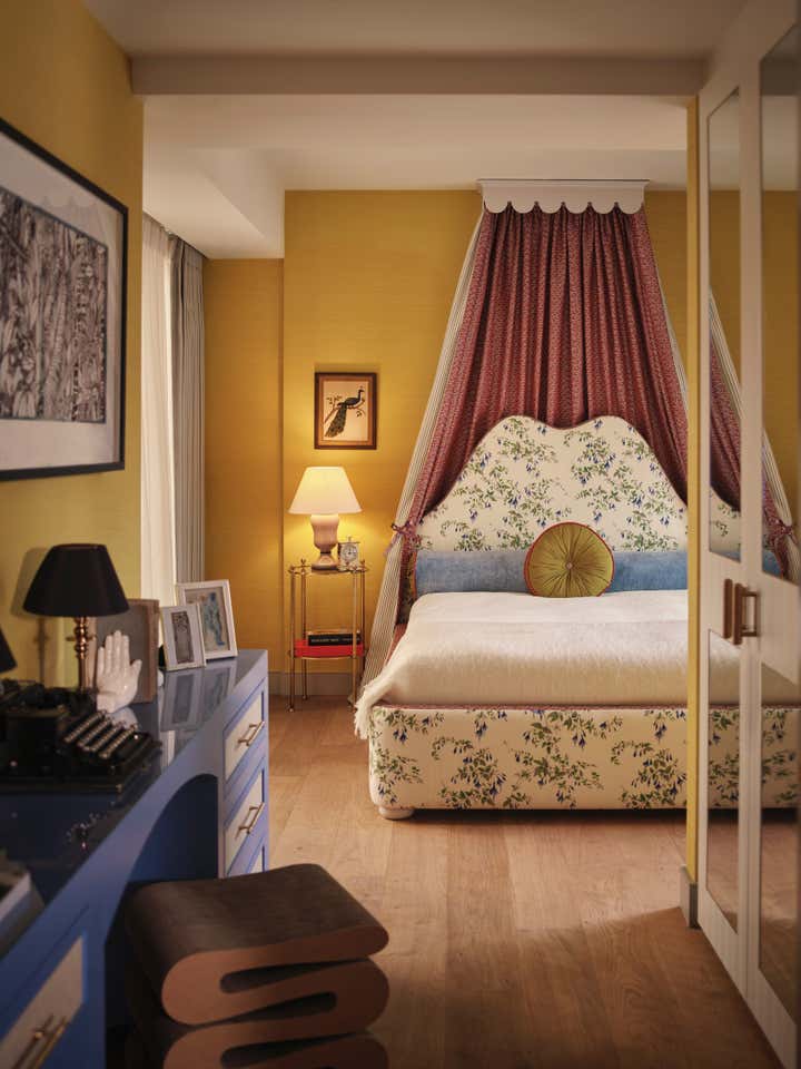 To create a functional yet high-style interior within a compact space, Marino blended bespoke furniture with her signature mix of vintage and antique pieces, maintaining aesthetic charm and a reduced carbon footprint. Marino s commitment to upcycling shines through as she repurposed unwanted items into unrecognizable treasures that align perfectly with the project’s vision. Custom-designed furniture, from the made-to-measure bed to the versatile bedroom desk/vanity/dresser and a dining table for four, ensures every piece serves its purpose while enhancing the apartment’s functionality and personality.