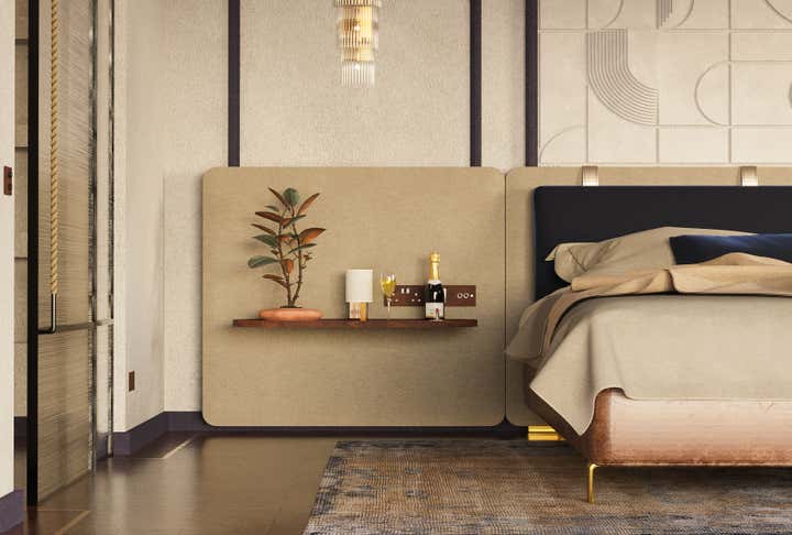 Distinctive style combining understated elegance, clean lines and exceptional craftsmanship. Each piece is designed to be coveted, enduring and iconic. There is no space for chaos. The bedroom keeps a luxury tone using natural materials and textures.