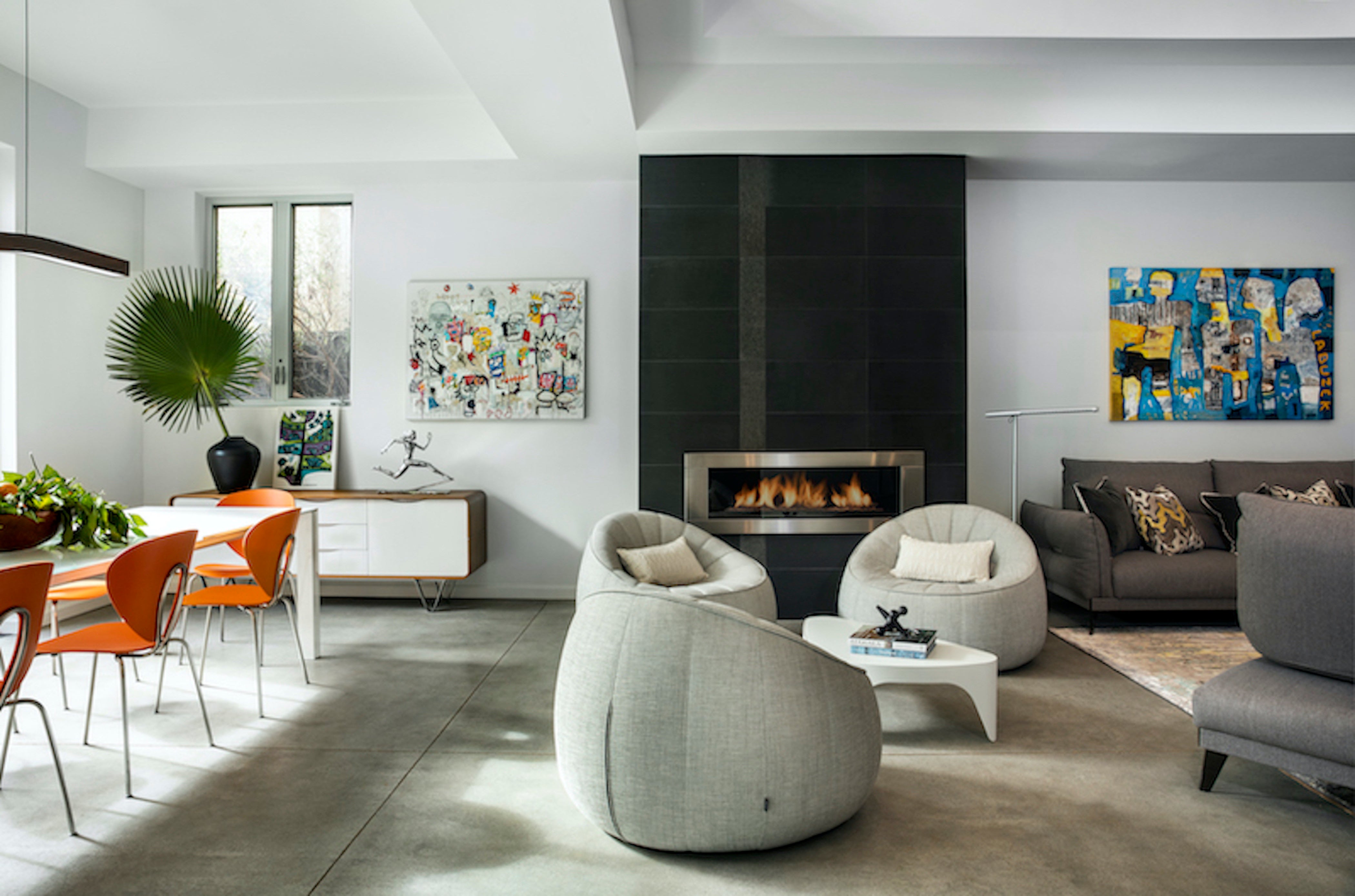 Completing this Los Angeles home was an exercise in sustainability. We repurposed furniture, found sinks made of recycled marble, and integrated walnut because of its richness and enduring qualities. Warm and modern, this home is a stunning backdrop for an incredible and overwhelming art collection, while complementing edgy details and intentional choices throughout.