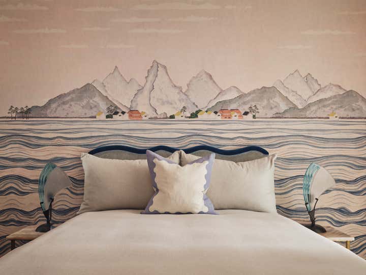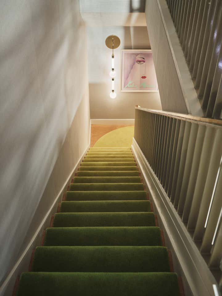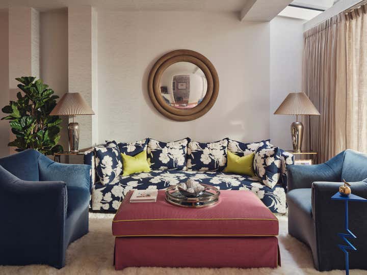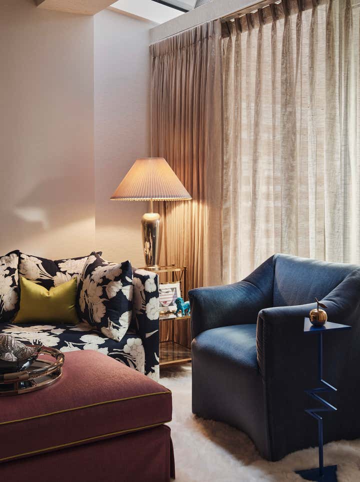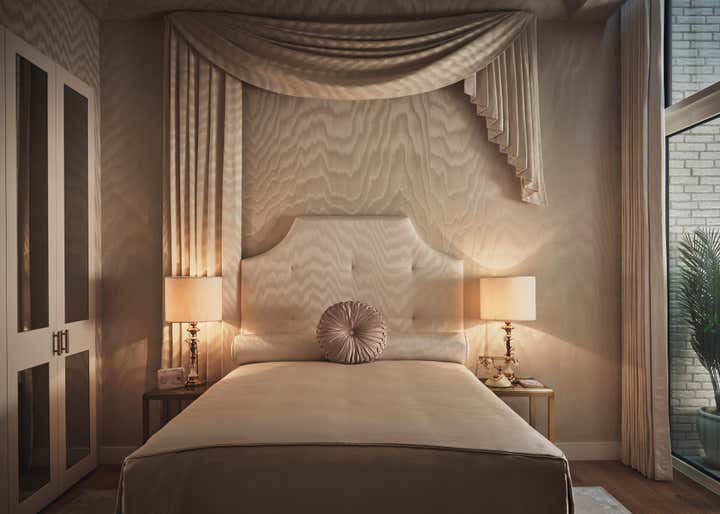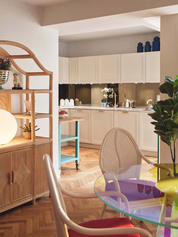 This three-bedroom duplex, spanning 1,500 square feet in the heart of London, seamlessly combines the glamour of 1950s Hollywood Regency with the playful opulence of 1980s Palm Beach socialites. It also features a layered touch of the iconic styles from 1980s "Miami Vice" and "Dynasty."