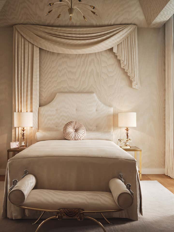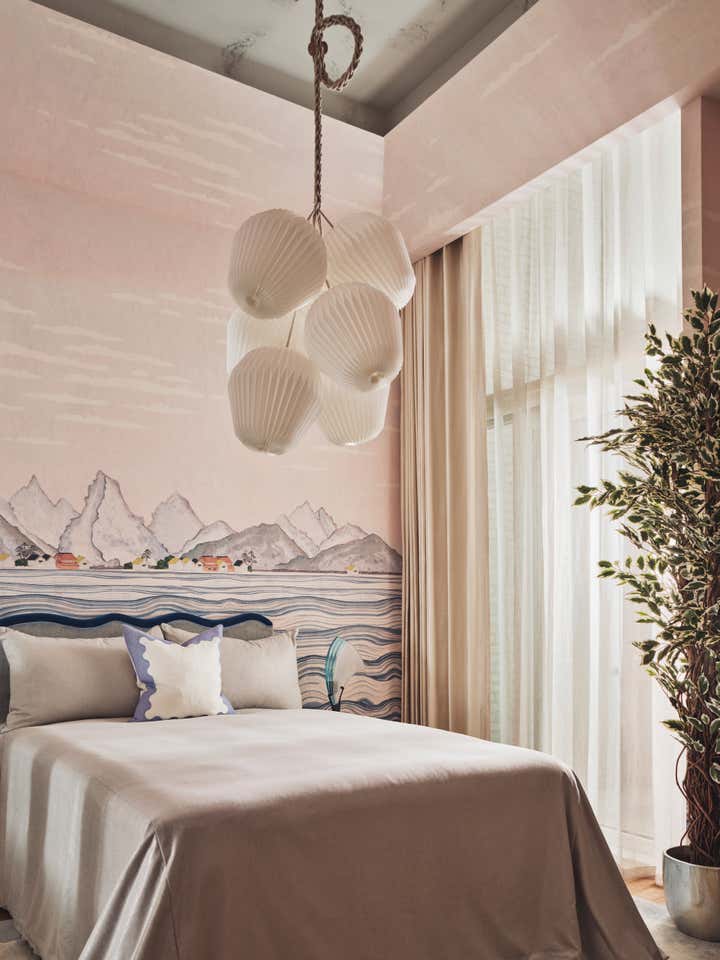 The design first drew inspiration from Joan Collins (hence the ‘Dynasty’ inspiration thrown in the mix!), particularly though, her famous 1950s photograph titled "Joan Collins Relaxes," and aims to reinterpret her dreamy pink bedroom in a contemporary context.