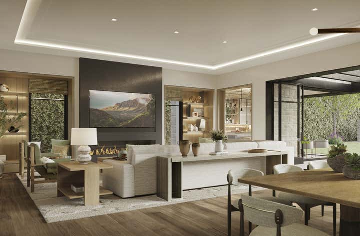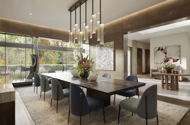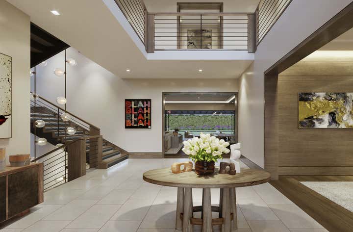 We are thrilled to announce the forthcoming realization of this expansive 14,000 sq. ft. residence, embodying a timeless and sophisticated design. The integration of transitional architecture with a modern touch adds a distinctive charm. With expansive windows on both levels, the couple can immerse themselves in an indoor-outdoor ambiance, savoring the abundant natural beauty surrounding their new home.