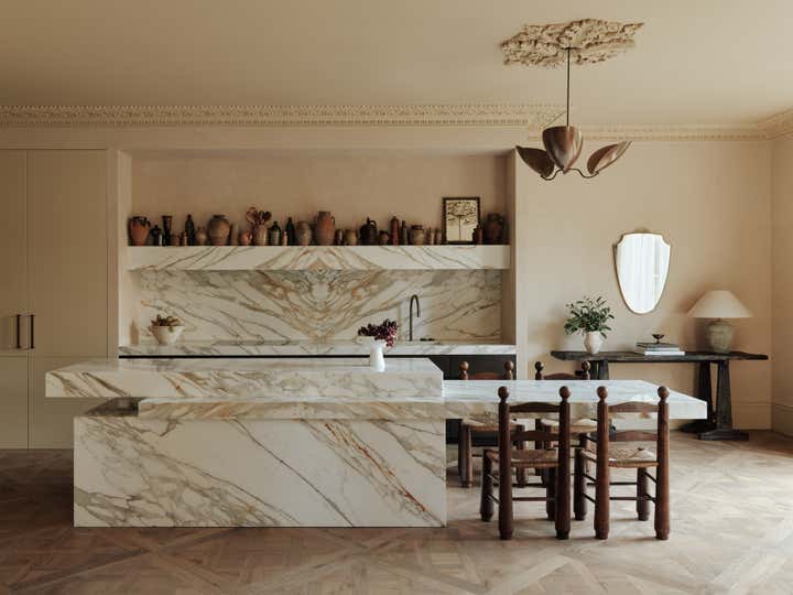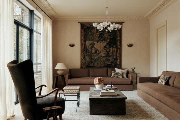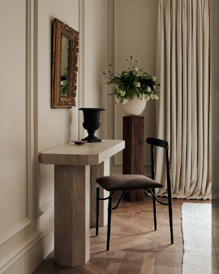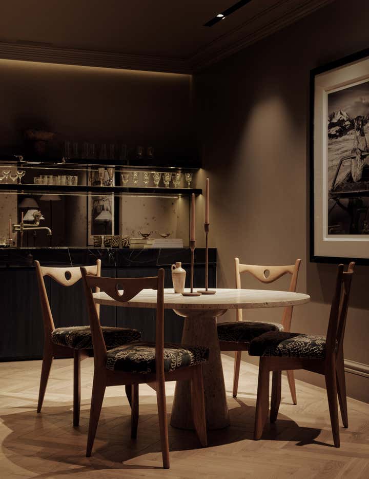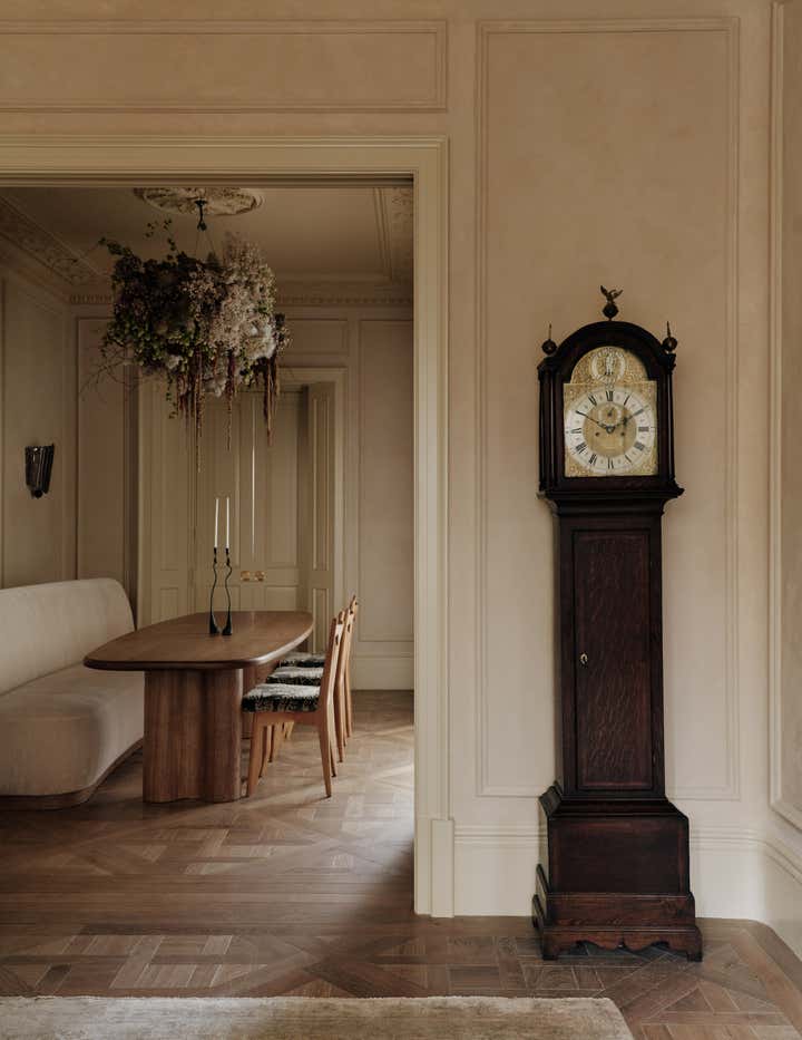 This exquisite 4567 sq. ft. four-bedroom triplex townhouse represents one of the latest creations from Banda Design Studio. Situated in the picturesque Notting Hill area, it features a harmonious blend of warm, earthy tones that perfectly accentuate its private garden, accessible directly from the property. This project beautifully embodies Banda’s core principles of heritage, elegance, and meticulous curation. With the inclusion of fine vintage furniture, antique tapestries, and carefully arranged floral compositions, it emanates a charming aura of femininity and tranquility.