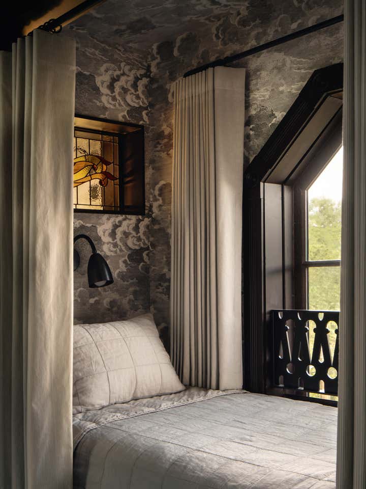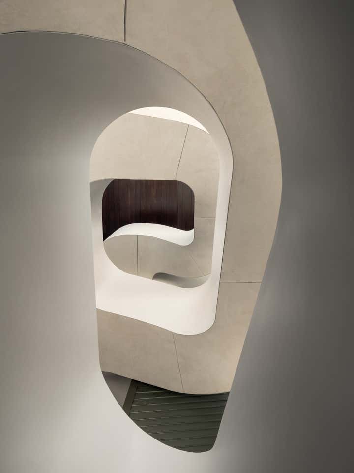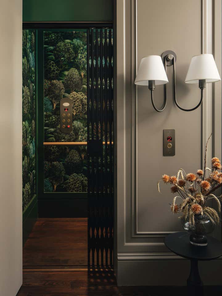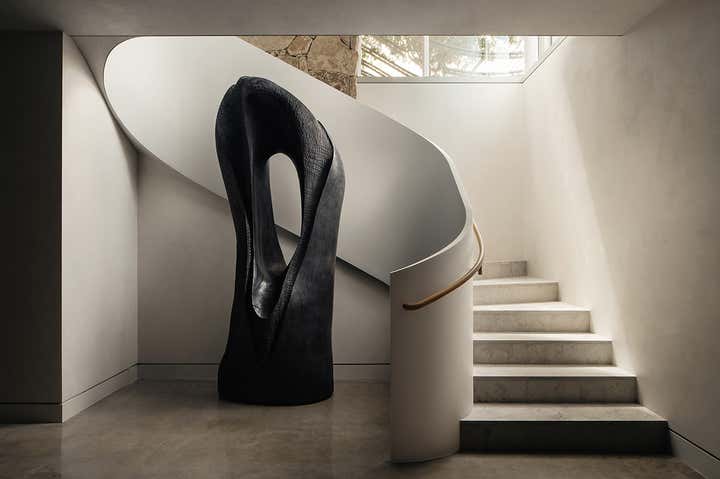 The interiors reveal a harmony of old and new, with layers of rich history complemented by modern lines and artistic sculptures. The original preserved parts of the home evoke a moody, lounge-like atmosphere with elegant textures and ambient lighting, while the modern addition is bright, and open, ideal for gatherings. Connected by a grand spiral staircase, the progression of the four levels of the home feature playful patterns and hidden nooks, illuminating a unique living experience of merging past and present.