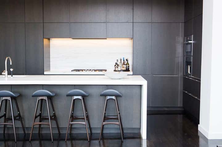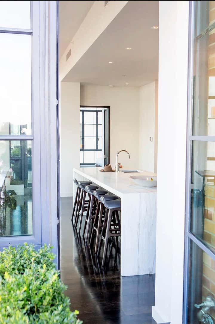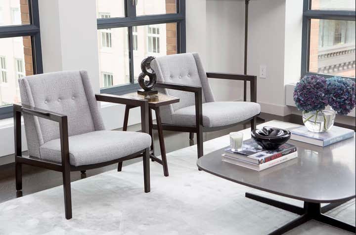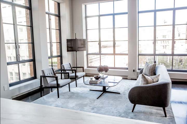 I was brought in to look at this apartment as soon as my client purchased the space. We decided right away that it was going to be a complete gut job. I hired the contractor and architect and oversaw all stages of the construction process. I designed the kitchen, bathrooms, outdoor terraces and filled the client s home with a combination of modern and mid-century modern furniture and beautiful lighting.