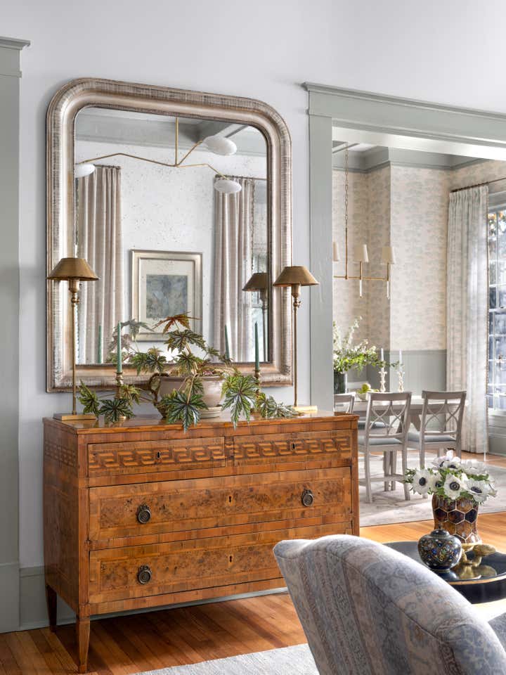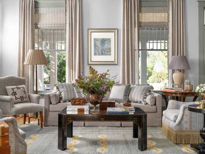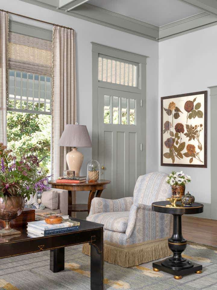 This stunning historic home in Athens, Georgia—listed on the National Register of Historic Places—required approval from the local Historic Preservation Committee for any exterior modifications and removal of non-historic additions. Ramsay Nye partnered with The Relay Shop to carry out the renovation with care and respect for its architectural legacy. For the interiors, Ramsay Nye designed custom cabinetry, built-ins, and millwork and reworked the original floor plan to create a private library, a new primary bathroom, and a powder room. Personalized bedroom suites for the client’s three children unequivocally reflect their individual tastes. As an avid gardener and a member of the oldest garden club in the United States, the client was especially keen on having a floral arranging room, which also doubles as mudroom. The overall design narrative emphasizes warmth, texture, and an edict for femininity, highlighting the home’s grand scale and natural light with soft hues.