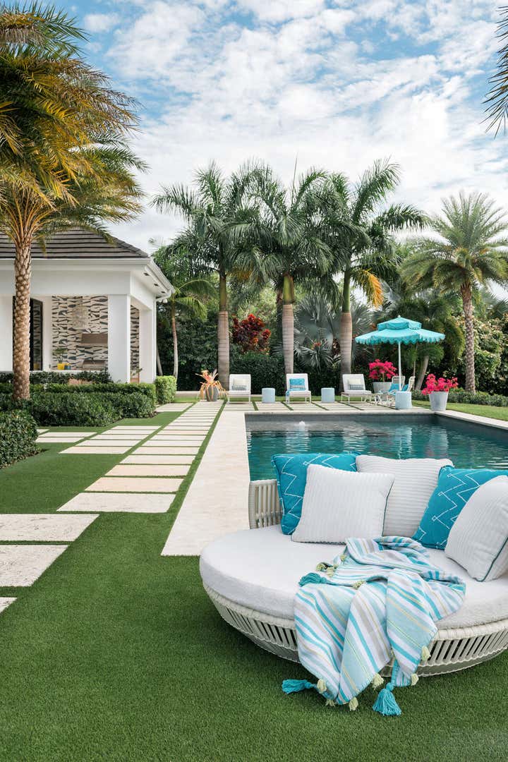 In their Palm Beach Polo Club home in Wellington, Florida, a young family with a love for color, pattern, and artisanal textiles sought to enhance their indoor-outdoor lifestyle while also speaking to the needs of their young children. Ramsay Nye brought their vision to life, seamlessly blending each room with the verdant landscape and ocean hues, reflecting their South Florida roots. The clients vibrant aesthetic was incorporated into every space, beautifully showcasing their curated art and cherished, reimagined and reupholstered vintage pieces. The resulting residence feels inviting, intimate, and deeply connected to its stunning surroundings.