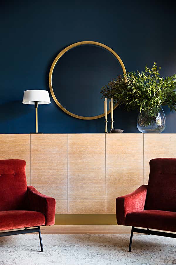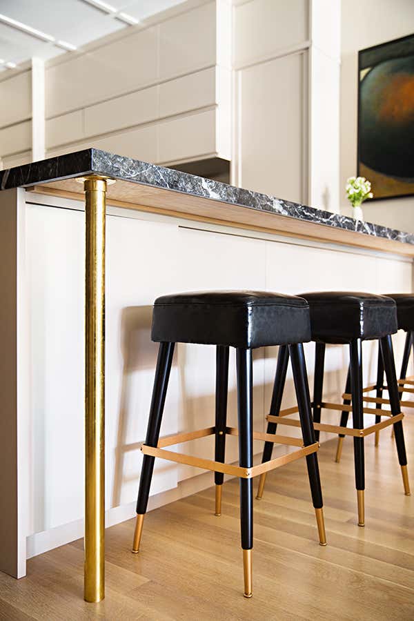 Despite the frequent television appearances and occasional magazine feature on his sweet family, Jeremiah Brent remains first and foremost a designer. His passion for interiors is palpable. Naturally, the decorator put his own personal design beliefs to use in the overhaul of a spare 2,500-square-foot New York apartment for a Nicaraguan family that values both function and style. First on the agenda: creating a space that felt unique to the clients while maximizing the space to accommodate their lifestyle. “We added everything,” says Brent, noting that the main apartment was one large room with no walls. “So we had to come up with creative ways to give not only visual interest but also architecture.” To do that, he incorporated paneling along the ceiling, which imparts subtle texture and a soothing sense of warmth in a dining nook off the kitchen, a space that’s versatile enough to serve as dinner-party site and reading perch.
