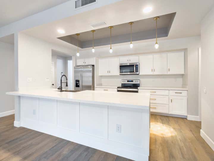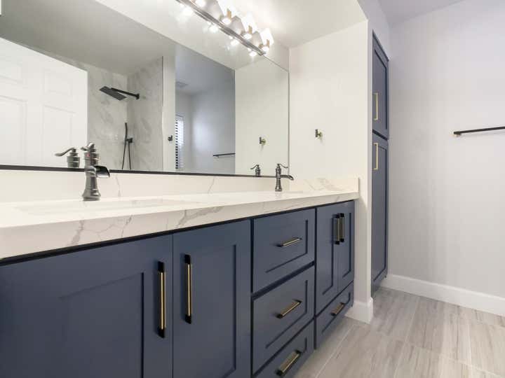 One of the most desired 55+ community in Arizona. Beautiful contemporary design with high-end finishes. White and dark blue cabinets in kitchen and bathrooms, white quartz countertop, and beautiful light fixtures and hardware, give this home the chic, and glamour, buyers love.