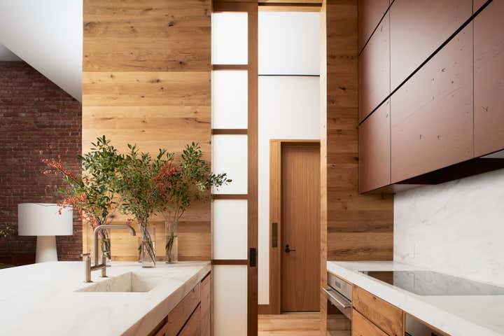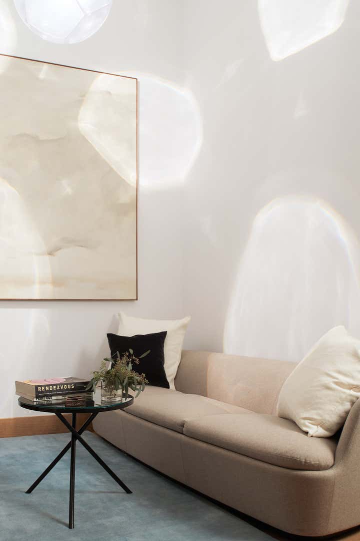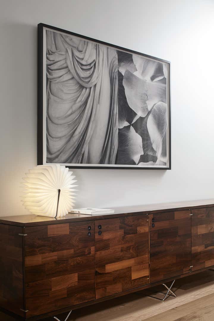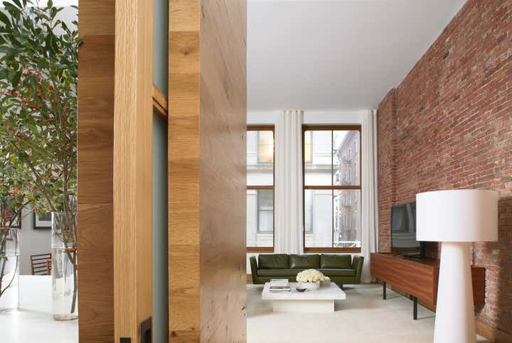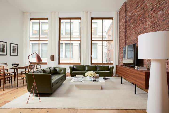 Magdalena Keck curated the furnishings, accessories, and art for the featured model apartment. Behind the iconic flat iron facade, the impeccably restored brick is joined by reclaimed oak and Vermont’s Danby marble. The light pours in through three pane wood windows, warmth emanates from all surfaces.