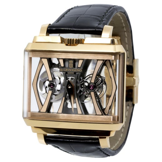 De Grisogono's earrings, bracelets, rings and other audacious pieces bedecked with black diamonds captured the fancy of well-heeled buyers in the 1990s, leading to the brand’s meteoric rise to fame. It entered the world of luxury watches in 2000 with the Instrumento Uno for men, which led to the development of the Crazy Skull in 2015. The playful made-to-order timepiece could be outfitted with up to 45 carats of gems.