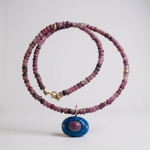 Lapis Mushroom Pendant with Pink Tourmalines and 14k Gold