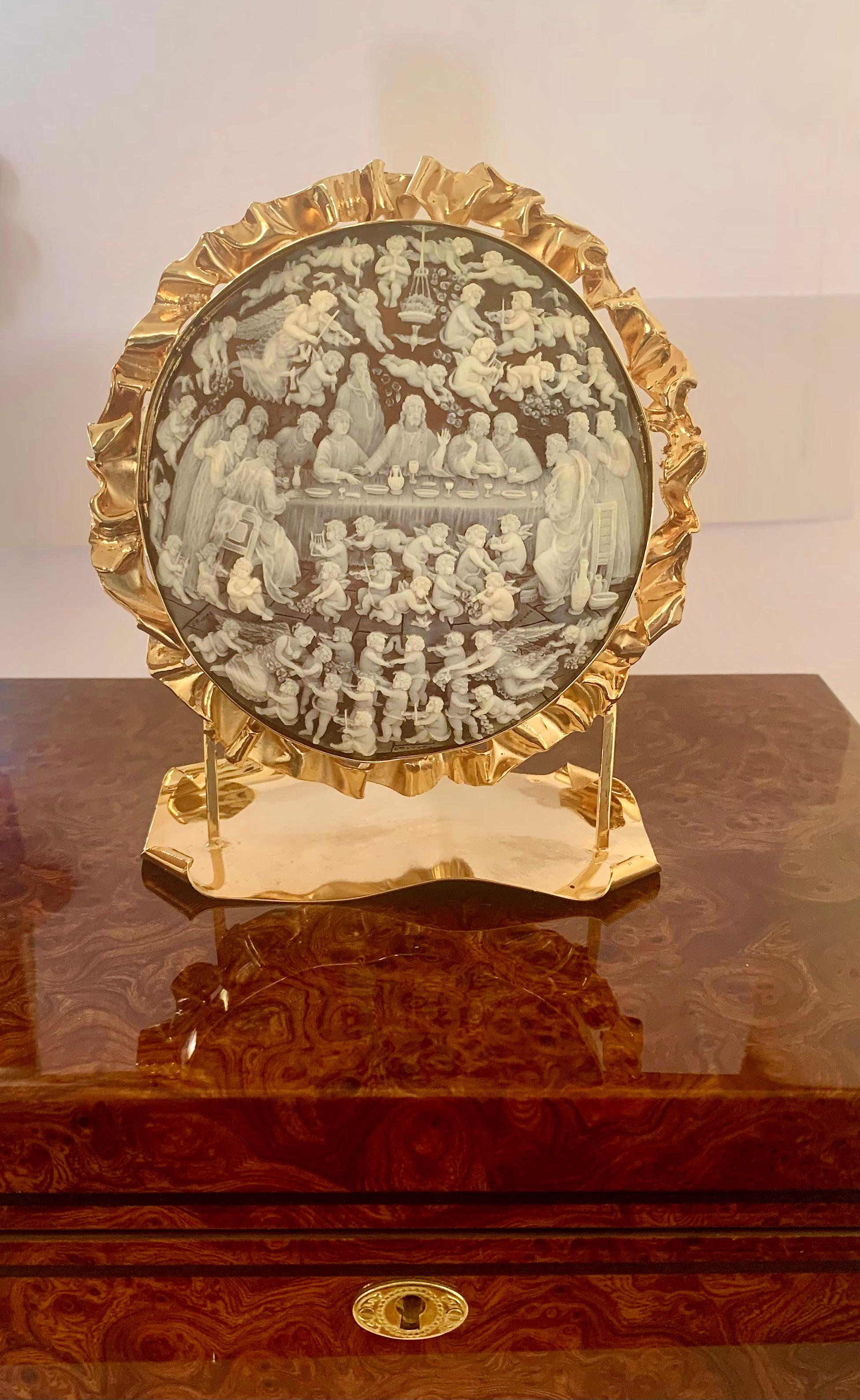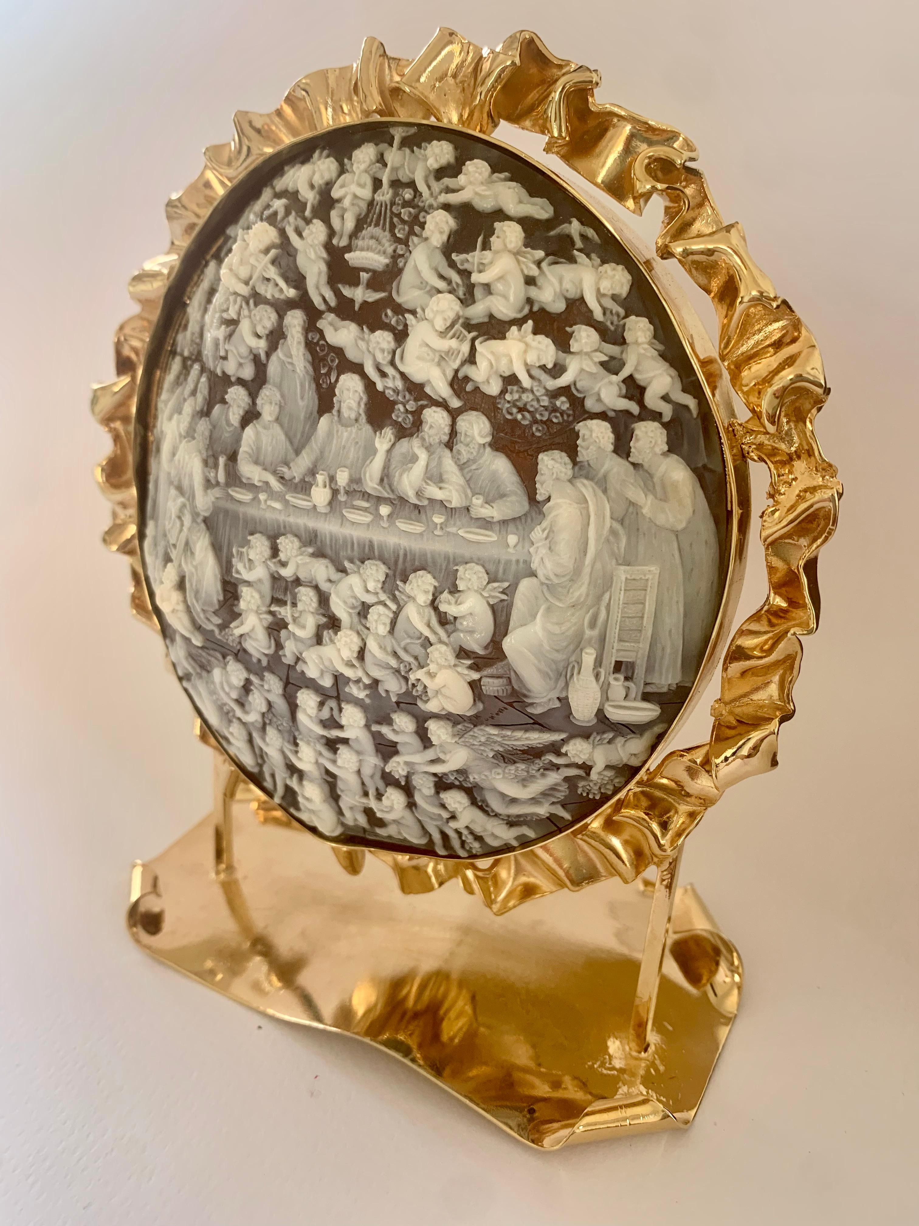 This beautiful cameo brooch/ pendant depicts the Last Supper in great detail. A true cameo is a miniature sculpture in relief, carved from a single shell. Travelers touring Europe he...
