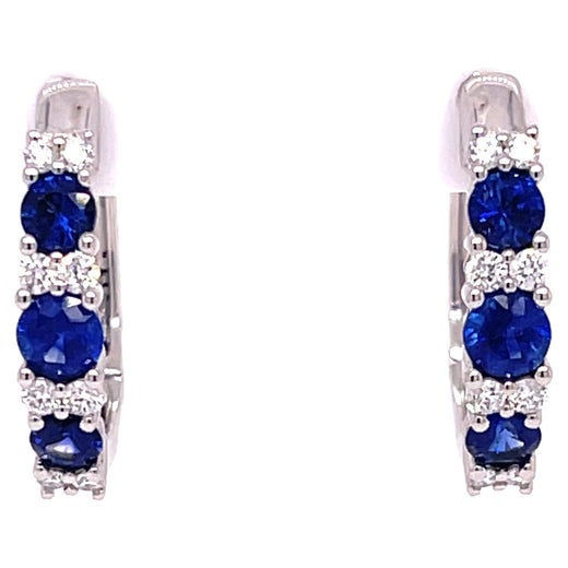 Sapphire and diamond huggies in 14K white gold. The huggies feature 0.91ctw of round sapphires and 0.21ctw of round diamonds.