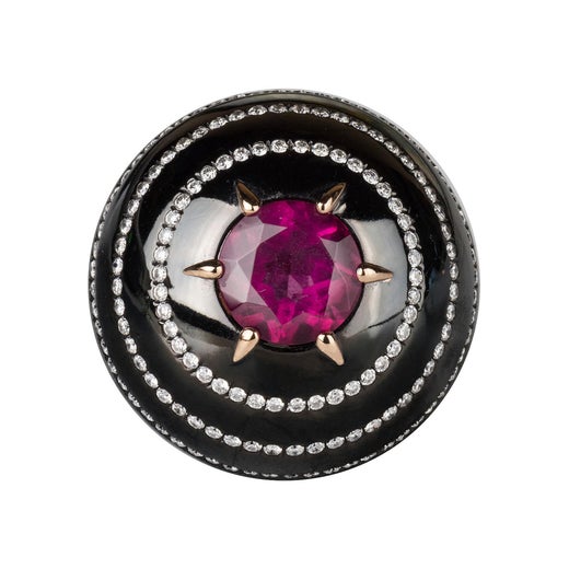 REVERSO ring in rose gold, titanium, kogolong, diamonds ct 0.25 and red enamel.