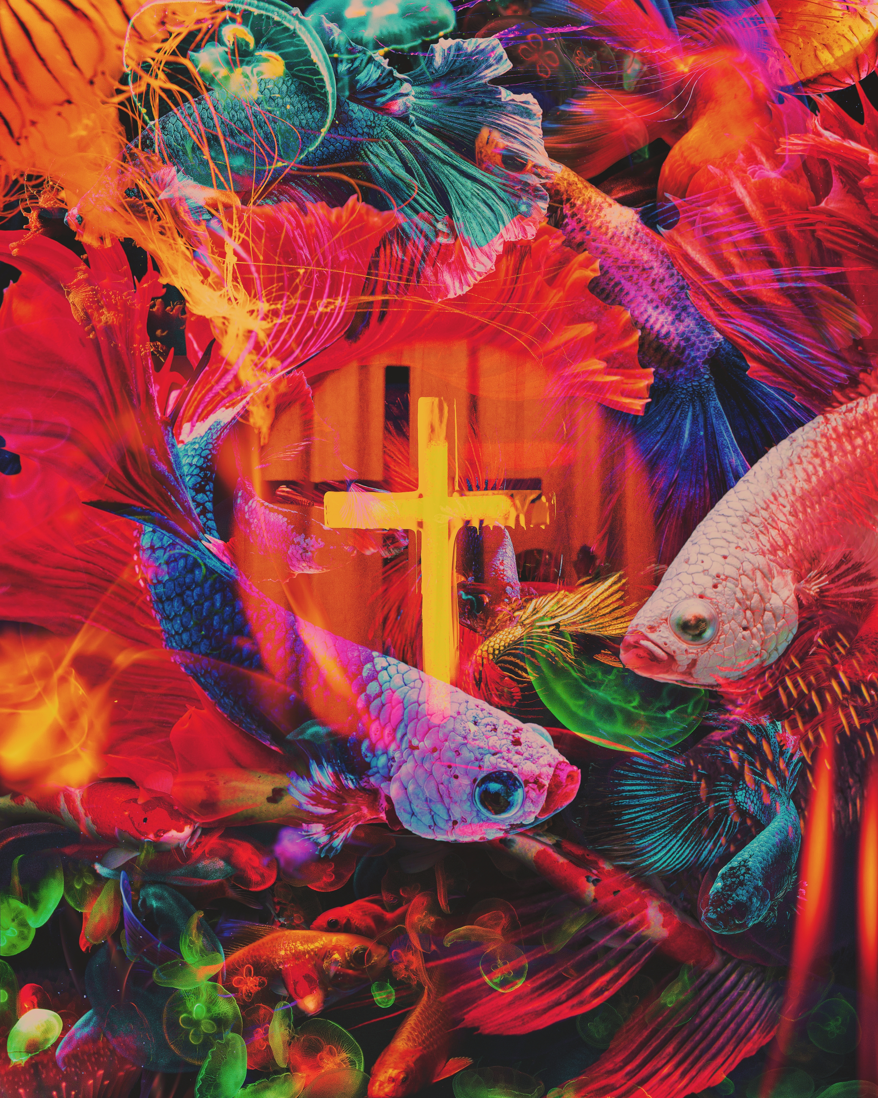 "Dream a Little Dream" is an artwork by Machado Leão created on September 11, 2022. Visually vibrant colors explode on the screen through fish and jellyfish representing the innocence of a little boy from a perfect family. The artist describes this art as an important moment in his journey.