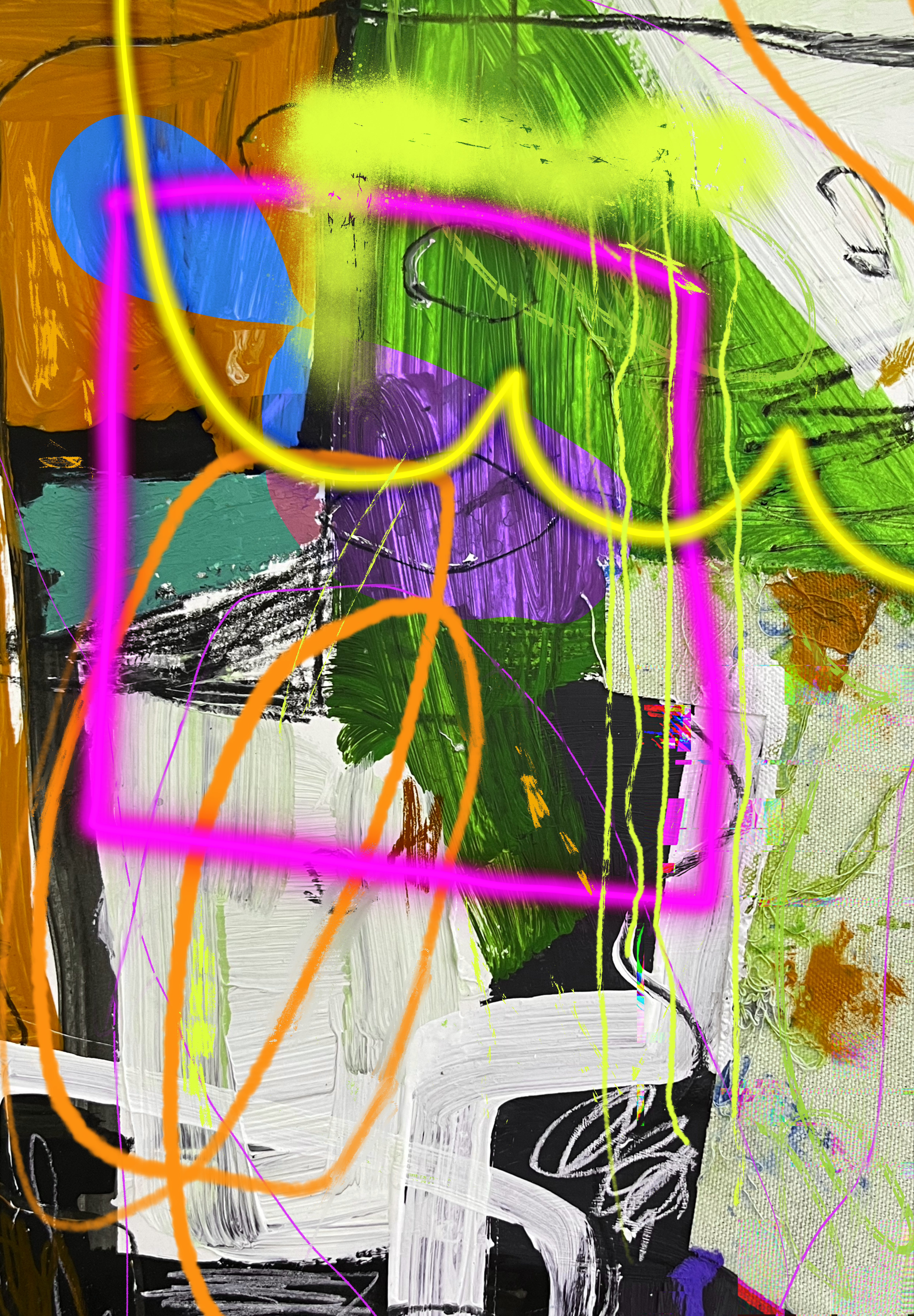 Merging Digital with analog abstract painting by Lesley Grainger. Exploring mark making, color and light.