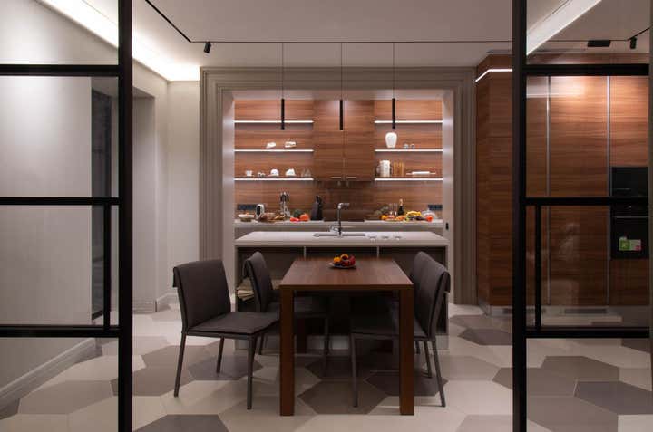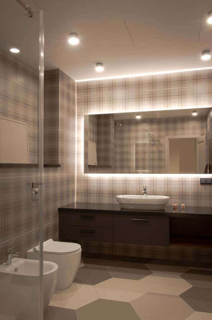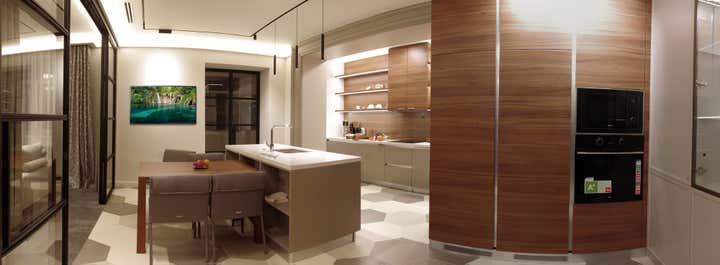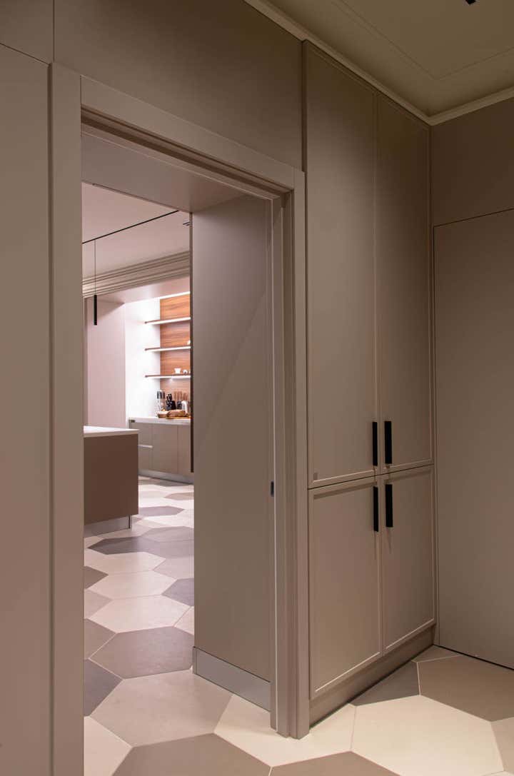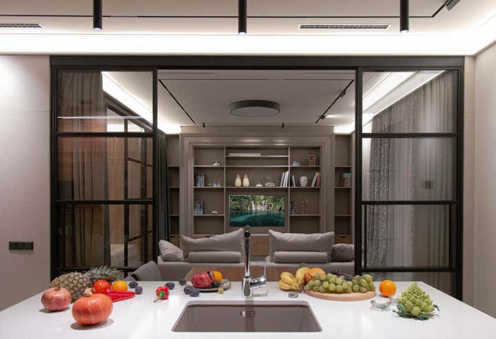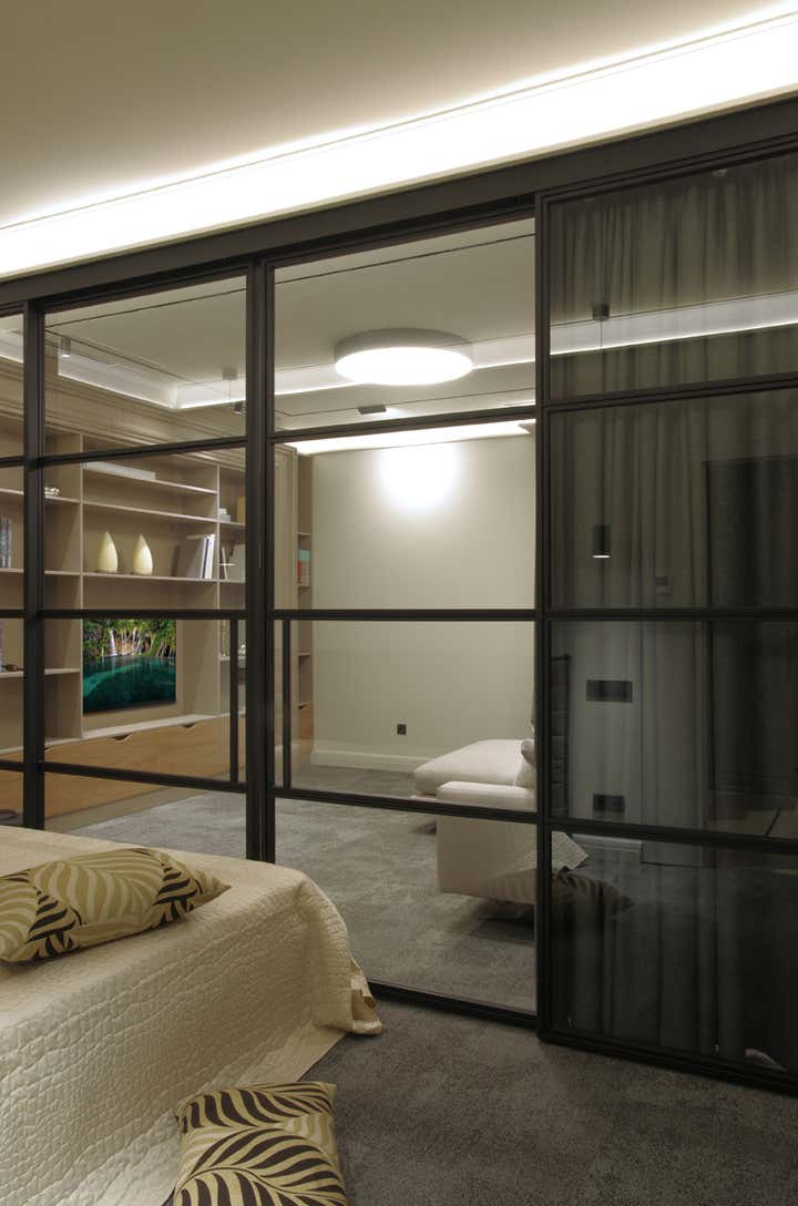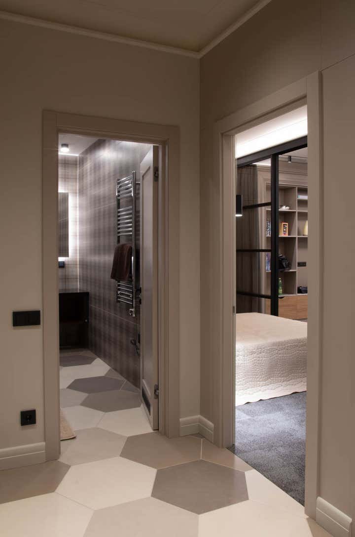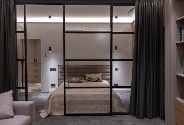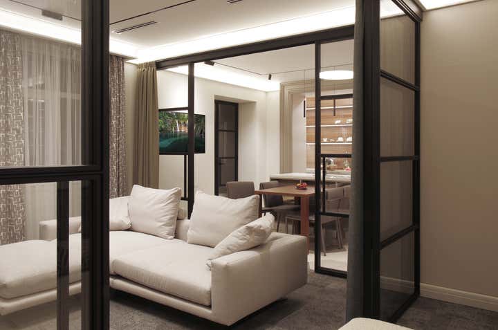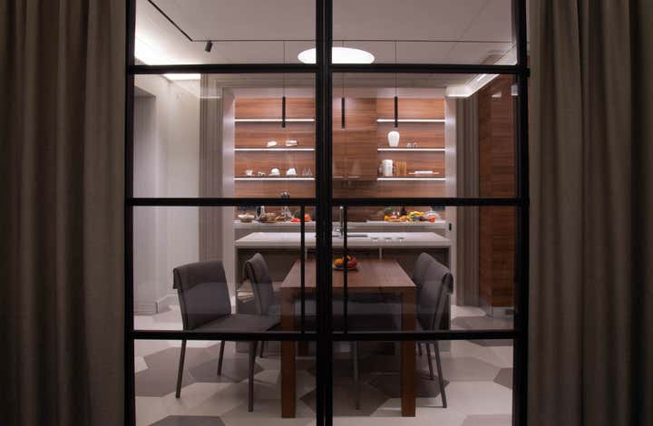 Actual coloring and materials, bespoke furniture by our studio, convenient lighting, spectacular decoration.