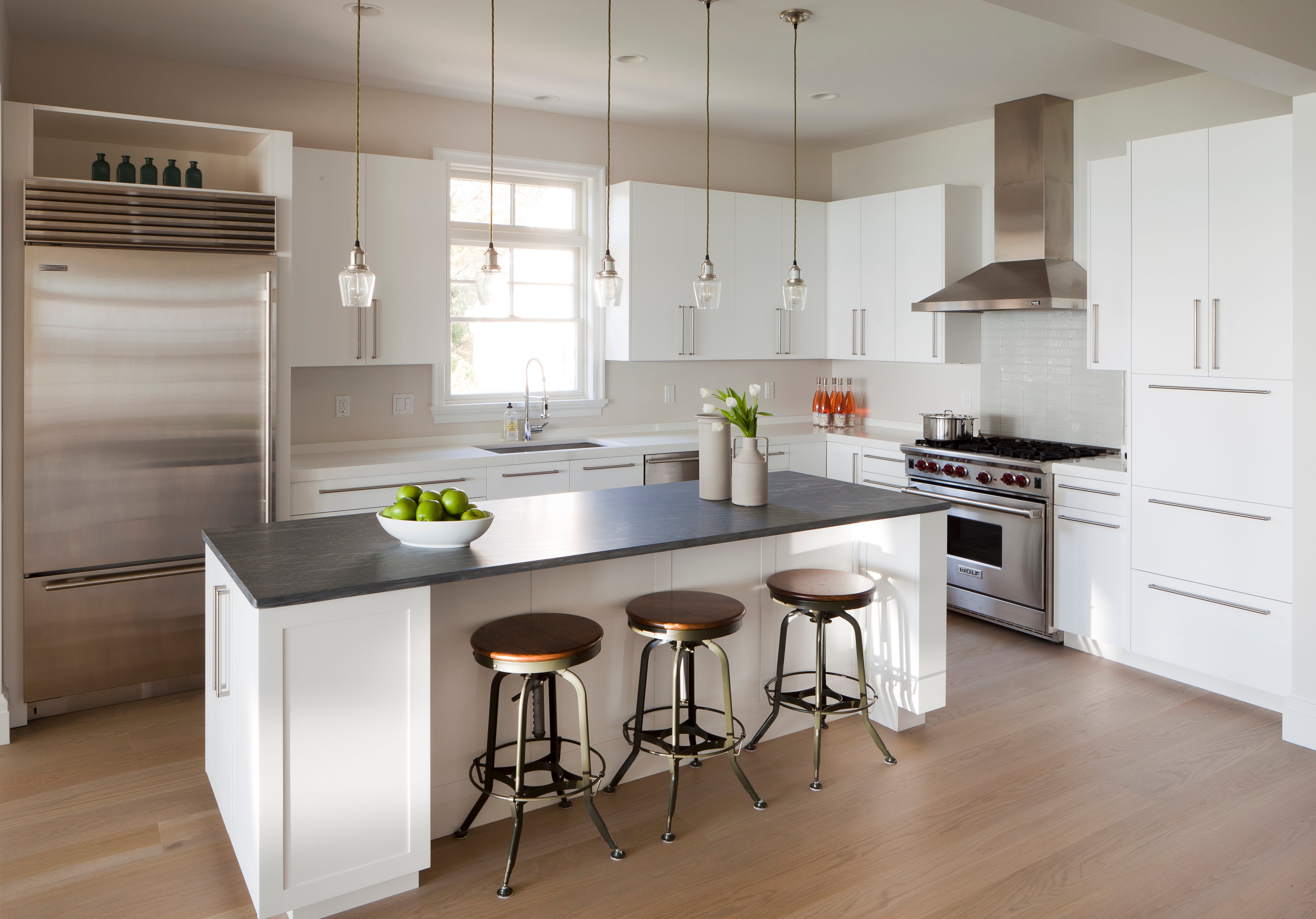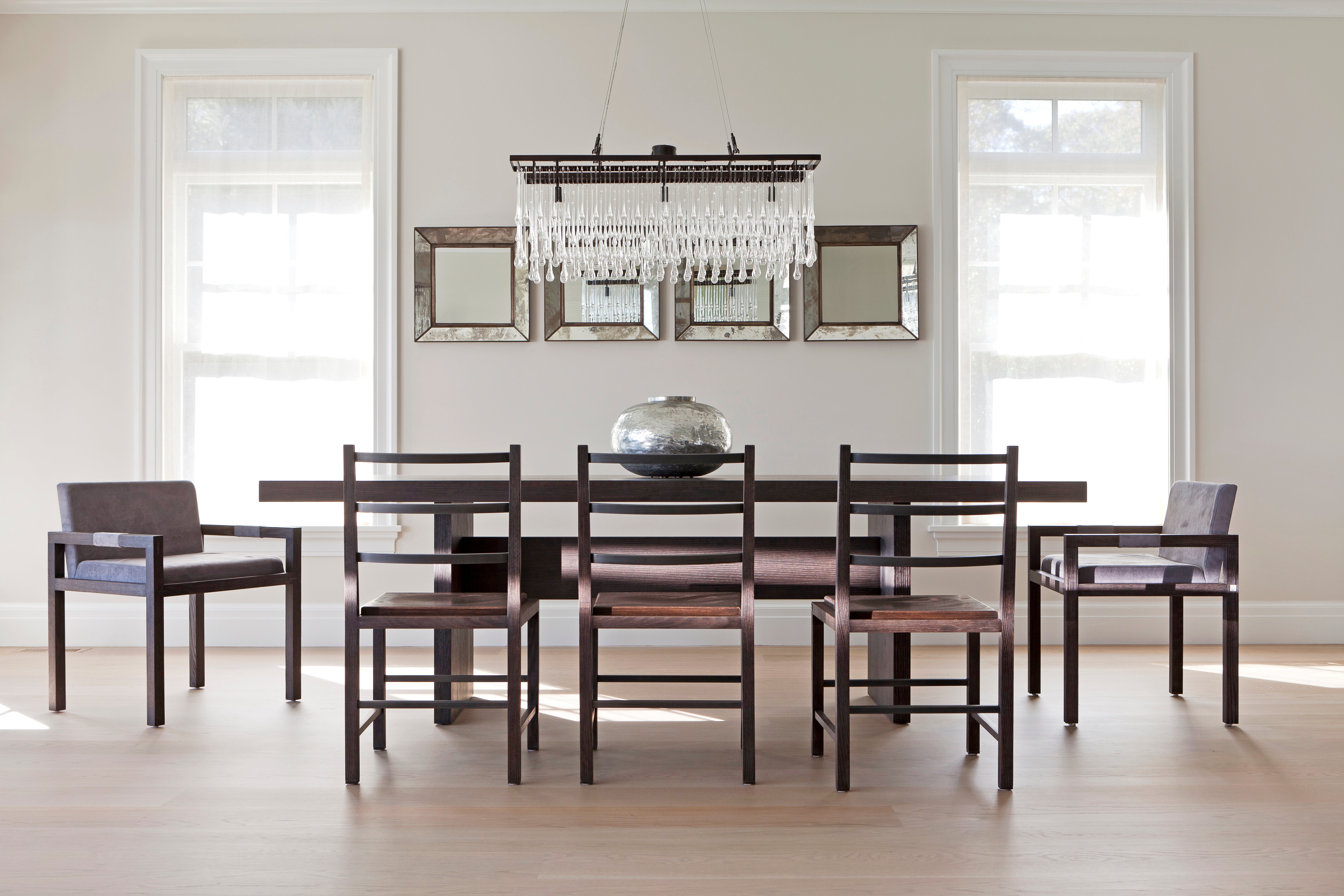 Designing this home on the water in North Fork, Long Island, we went with a minimalist aesthetic in the form of clean lines, elegant lighting and hand-crafted furnishings.