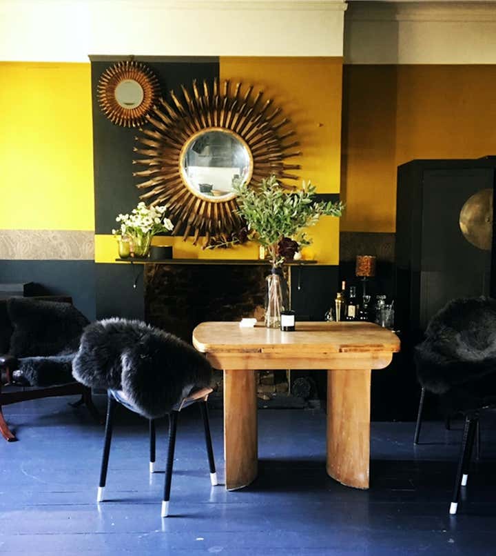 Dramatic hues in Mustard yellow and ink. Creating a work of art with the home or space. Allowing the bones of the room and the things within to compliment and emphasise.