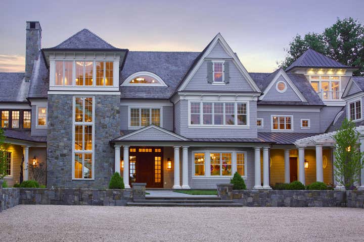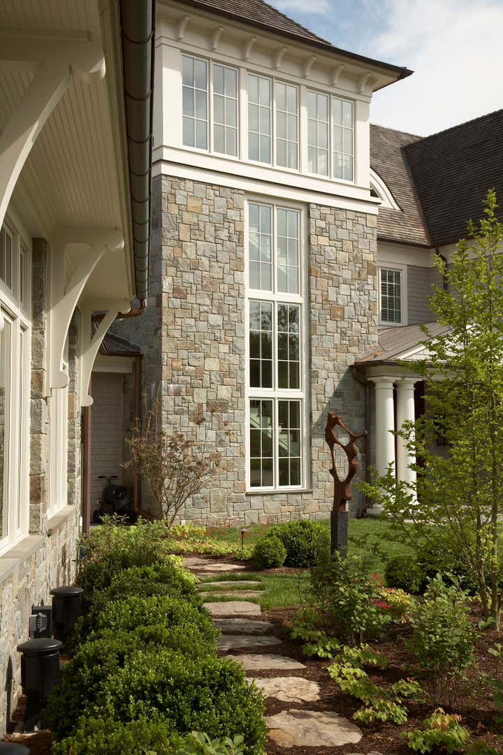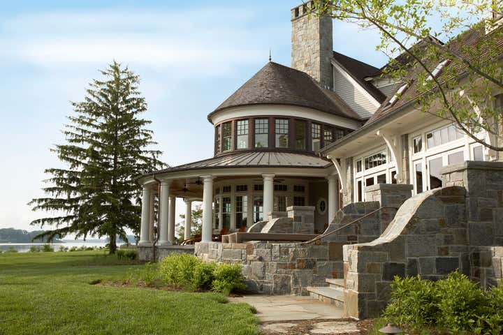 A blend of shingle style seaside elegance integrated with Maryland’s Eastern Shore farmhouse refinement creates this stunning four-story 14,000 SF residence. The main floor features high-end finishes and includes a great room with a large stone fireplace and open kitchen, formal dining room, butler’s pantry, mudroom, bathroom and a heart pine paneled office. A semi-circular sitting room with a fireplace commands a 180-degree view of Aberdeen Creek and surrounding marshes. A stone and timberframe pool room provides a large gathering place for entertainment. The landscape plan includes an outdoor hot tub and a generous stone and grass entertainment area. A working orchard is located off the back porch.